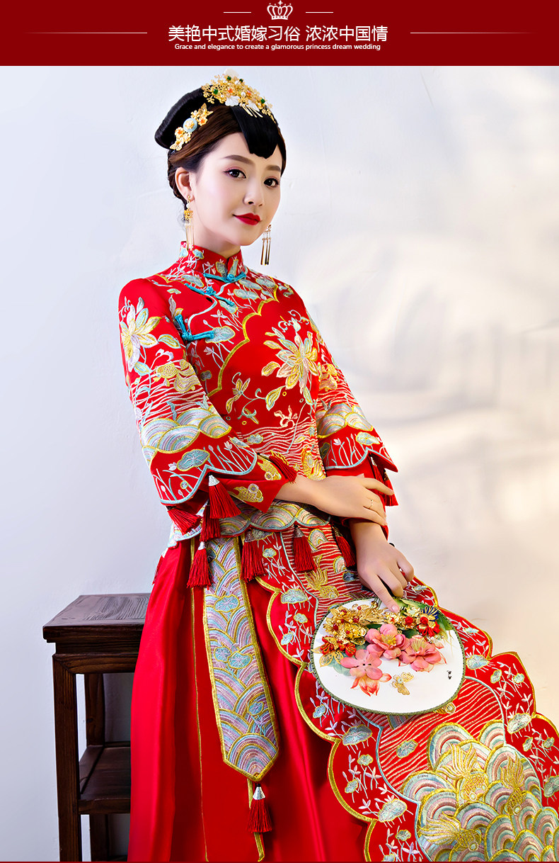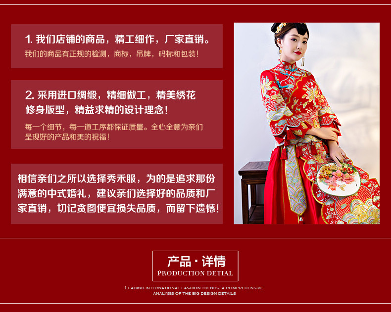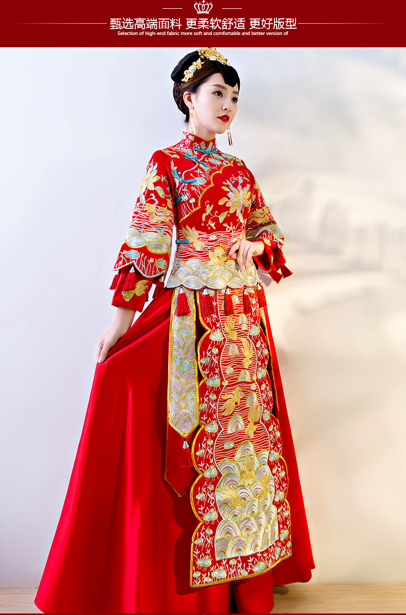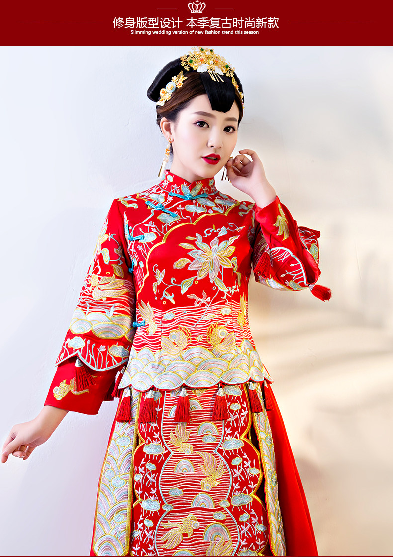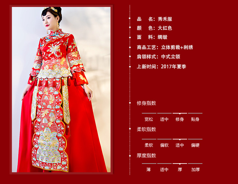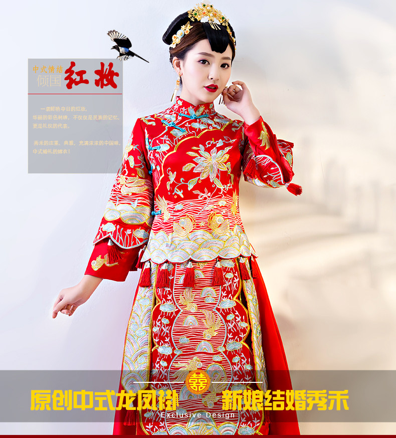 秀禾服新娘2017新款中式婚纱嫁衣敬酒古装礼服结婚服龙凤褂秀和服