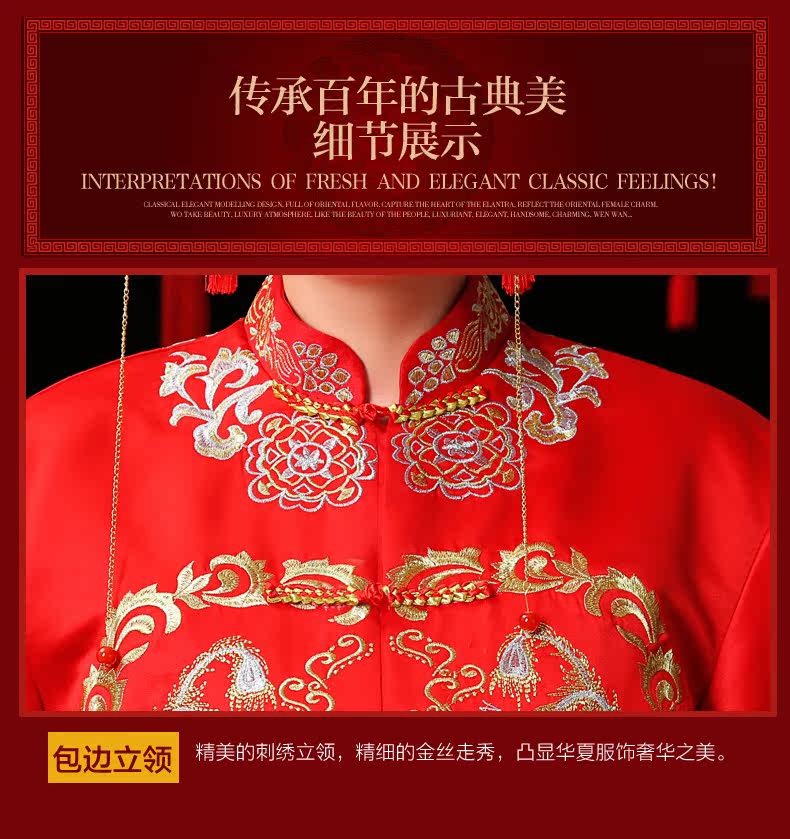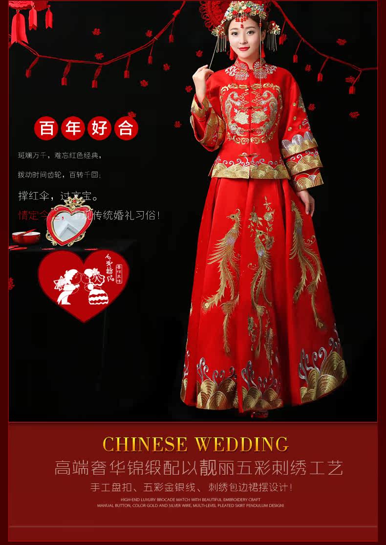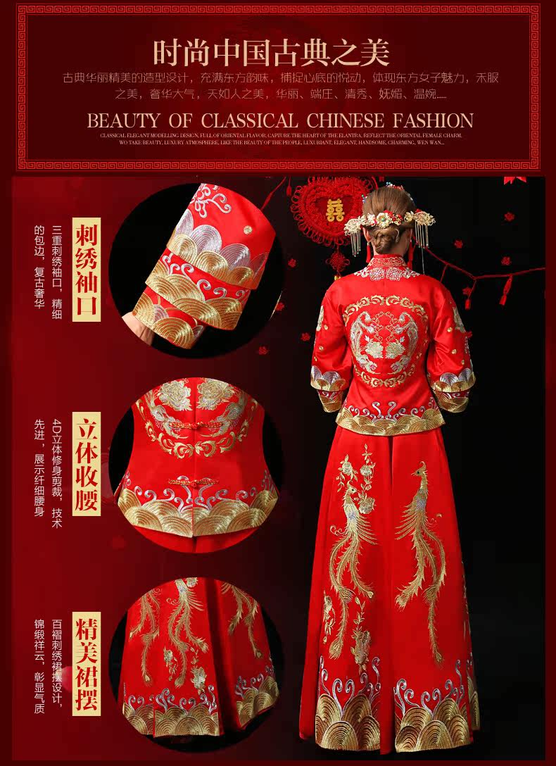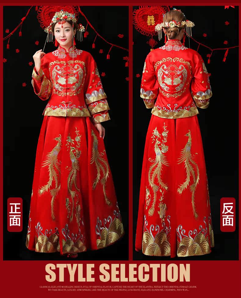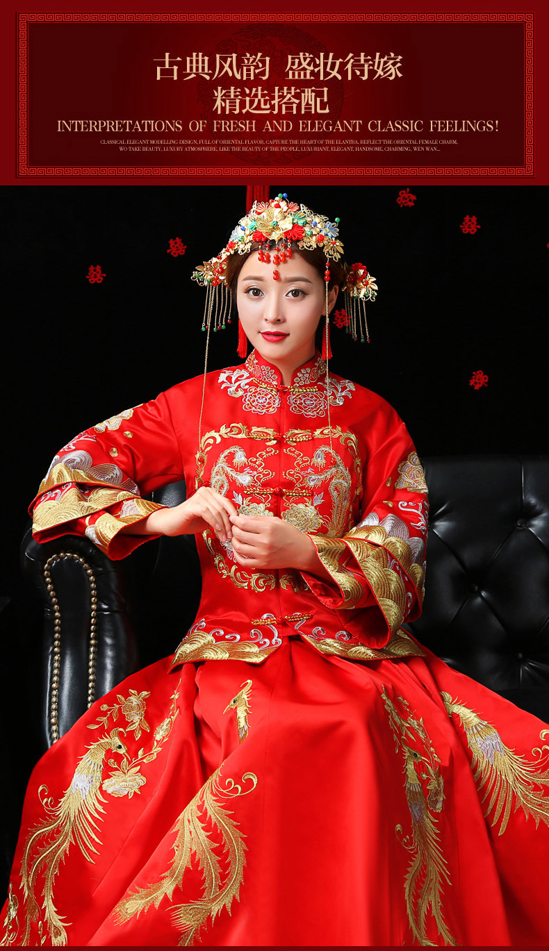 商品标签:高端奢华金线 重工大摆刺绣 中式嫁衣
