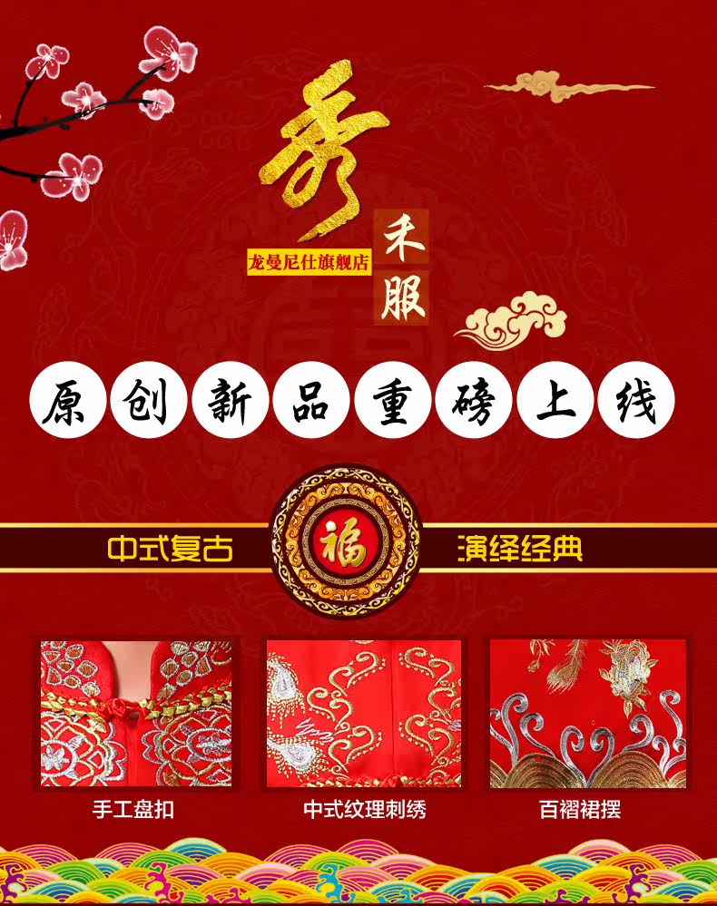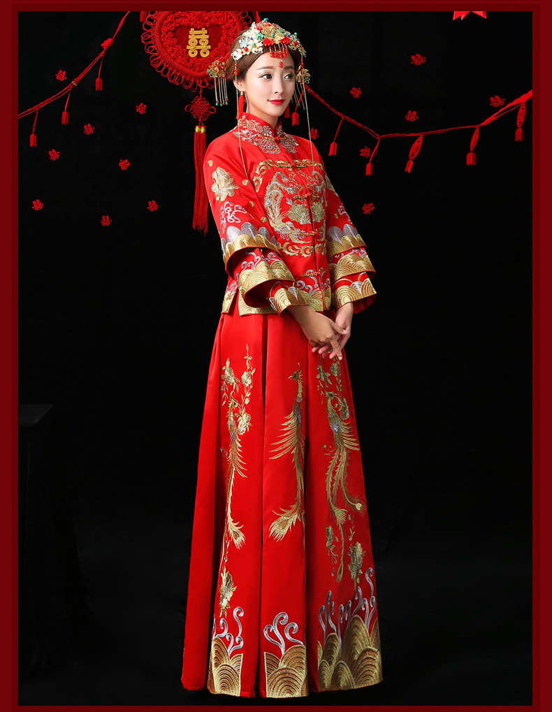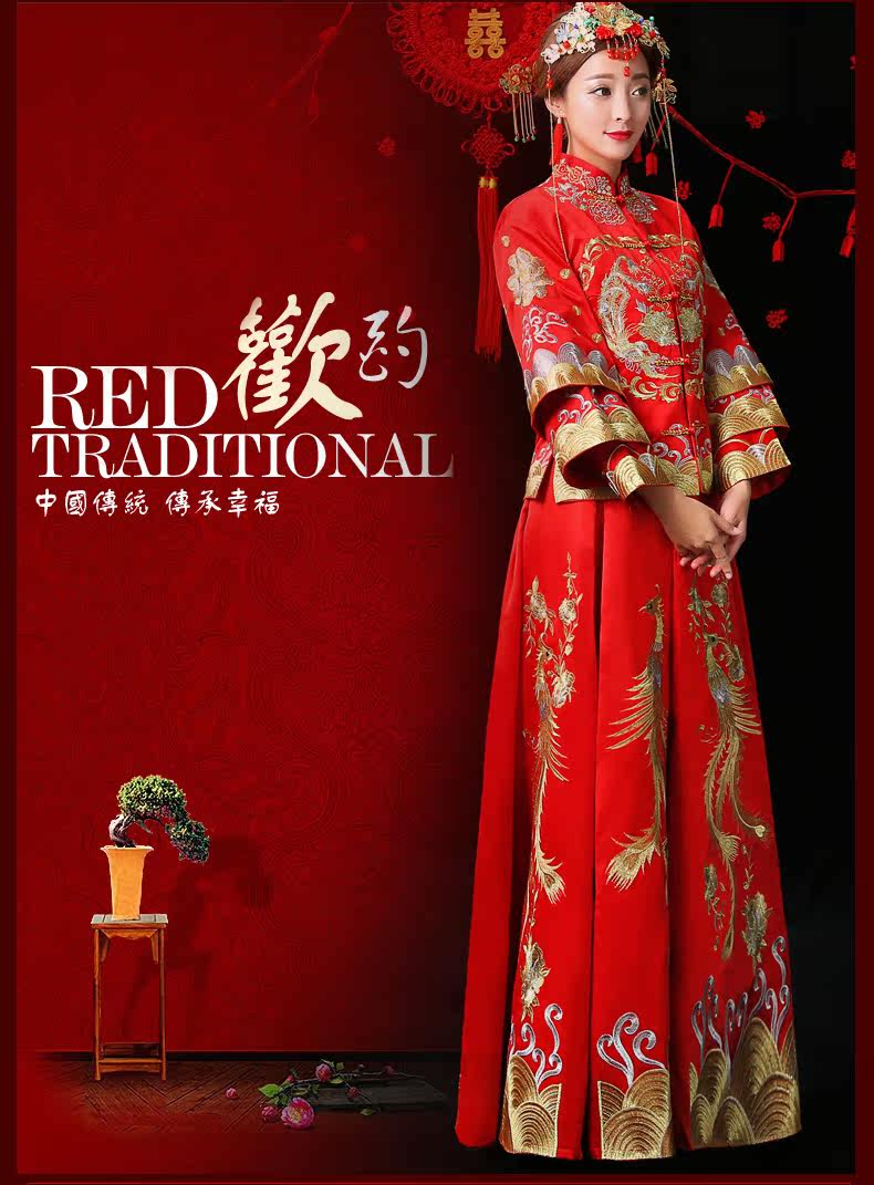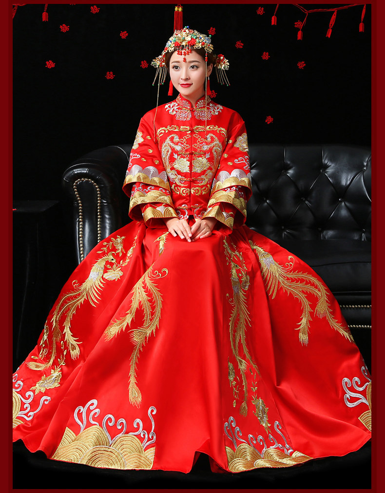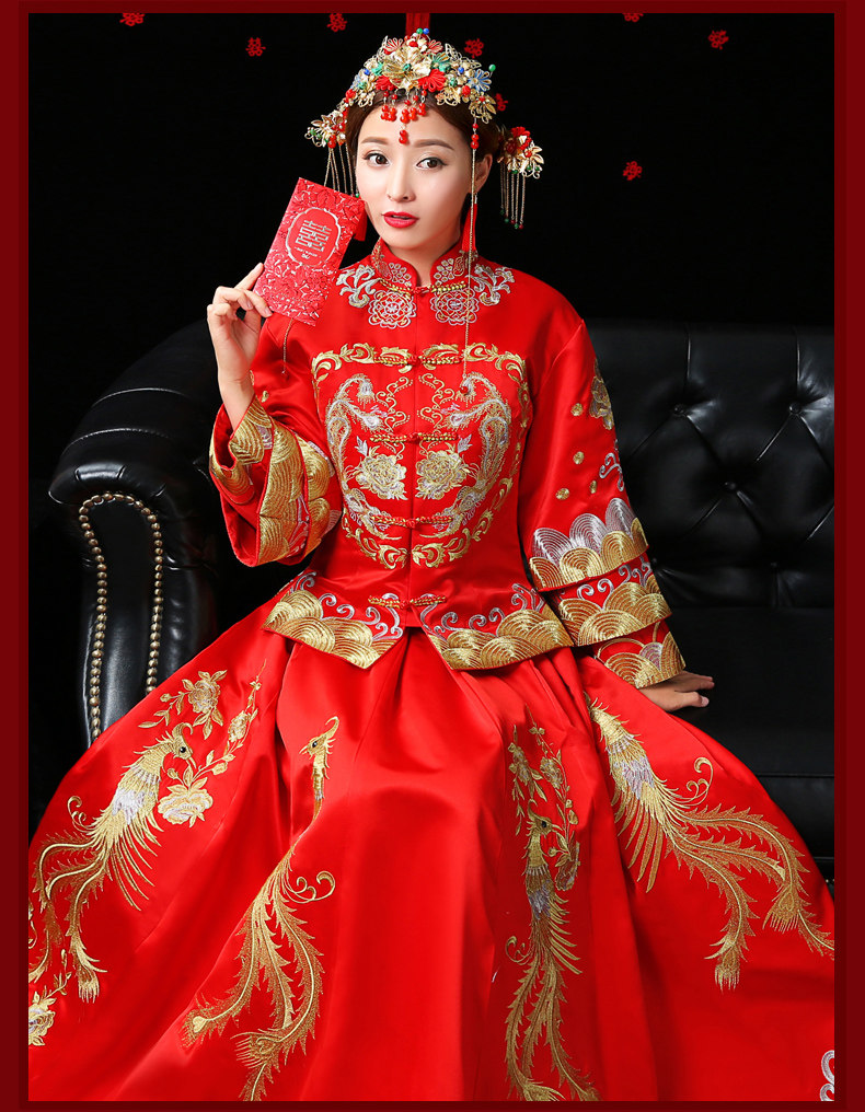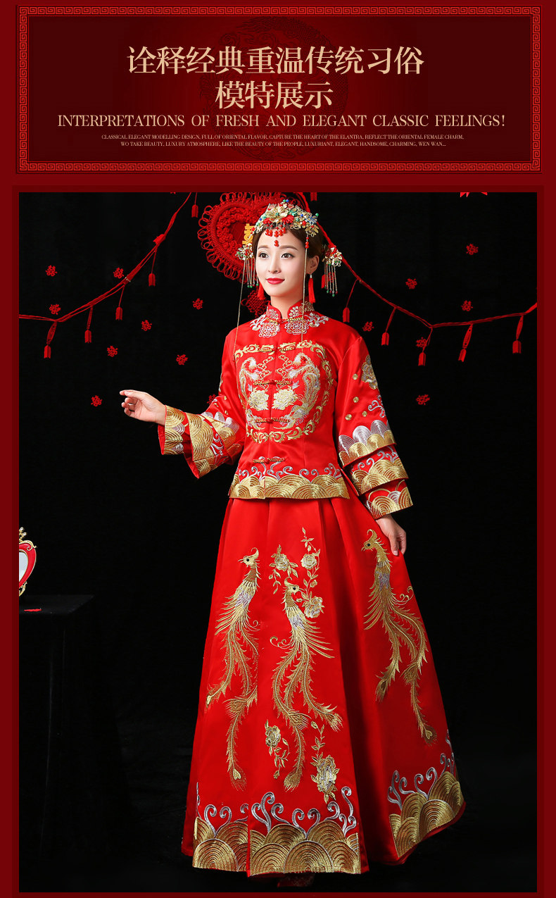 商品标签:高端奢华金线 重工大摆刺绣 中式嫁衣
