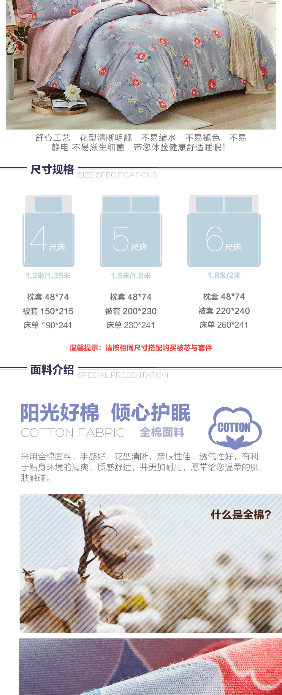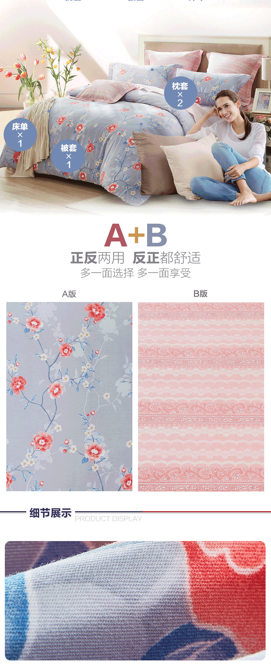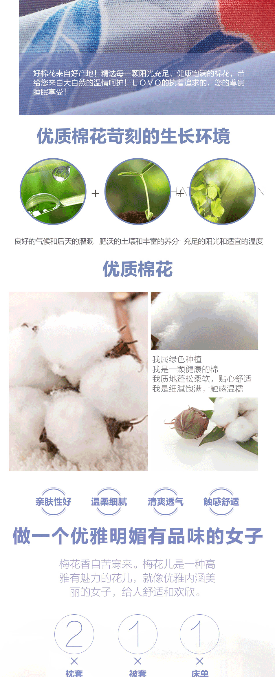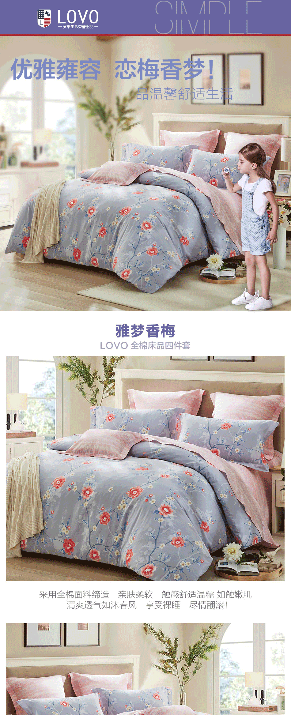 LOVO 家纺罗莱生活荣誉出品 纯棉床上四件套全棉田园被套床单1.5m床