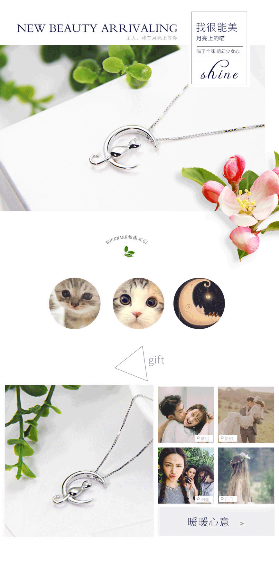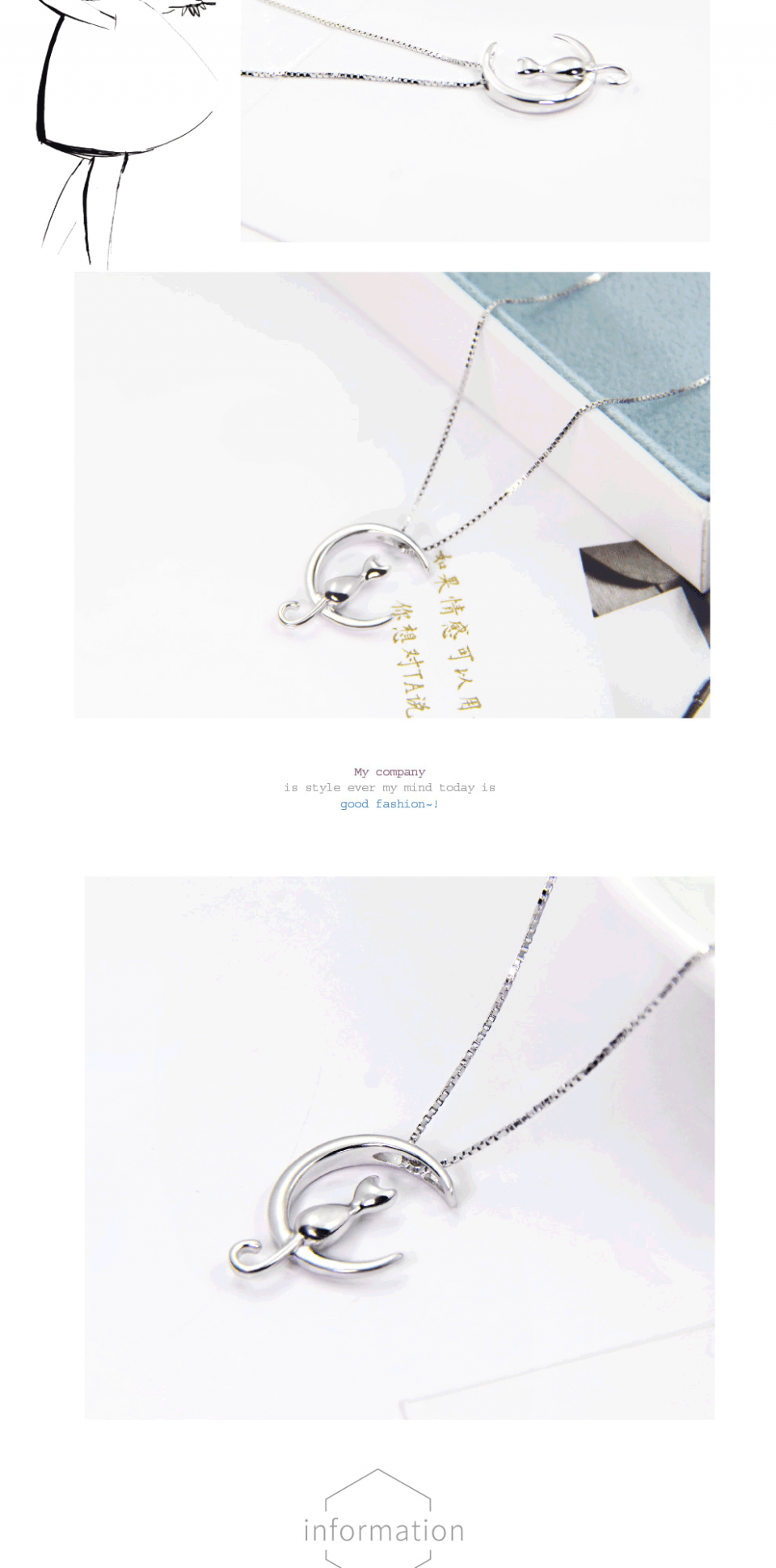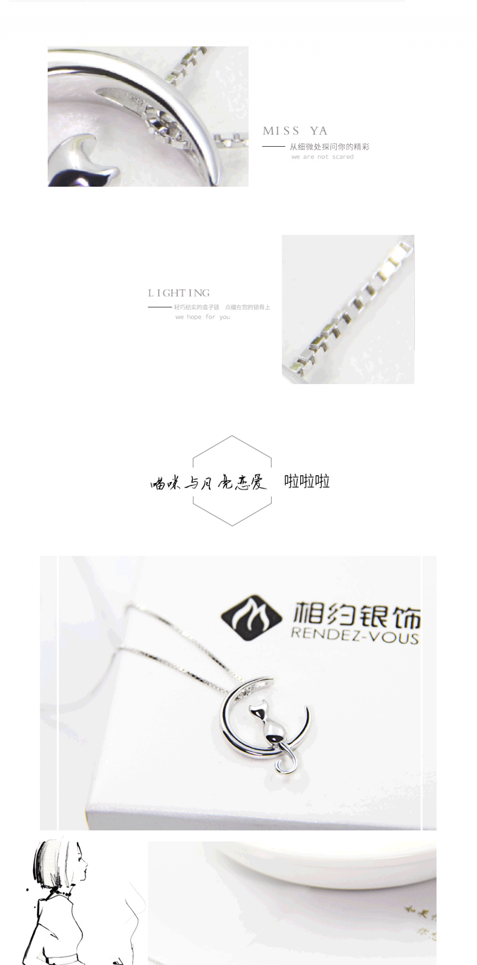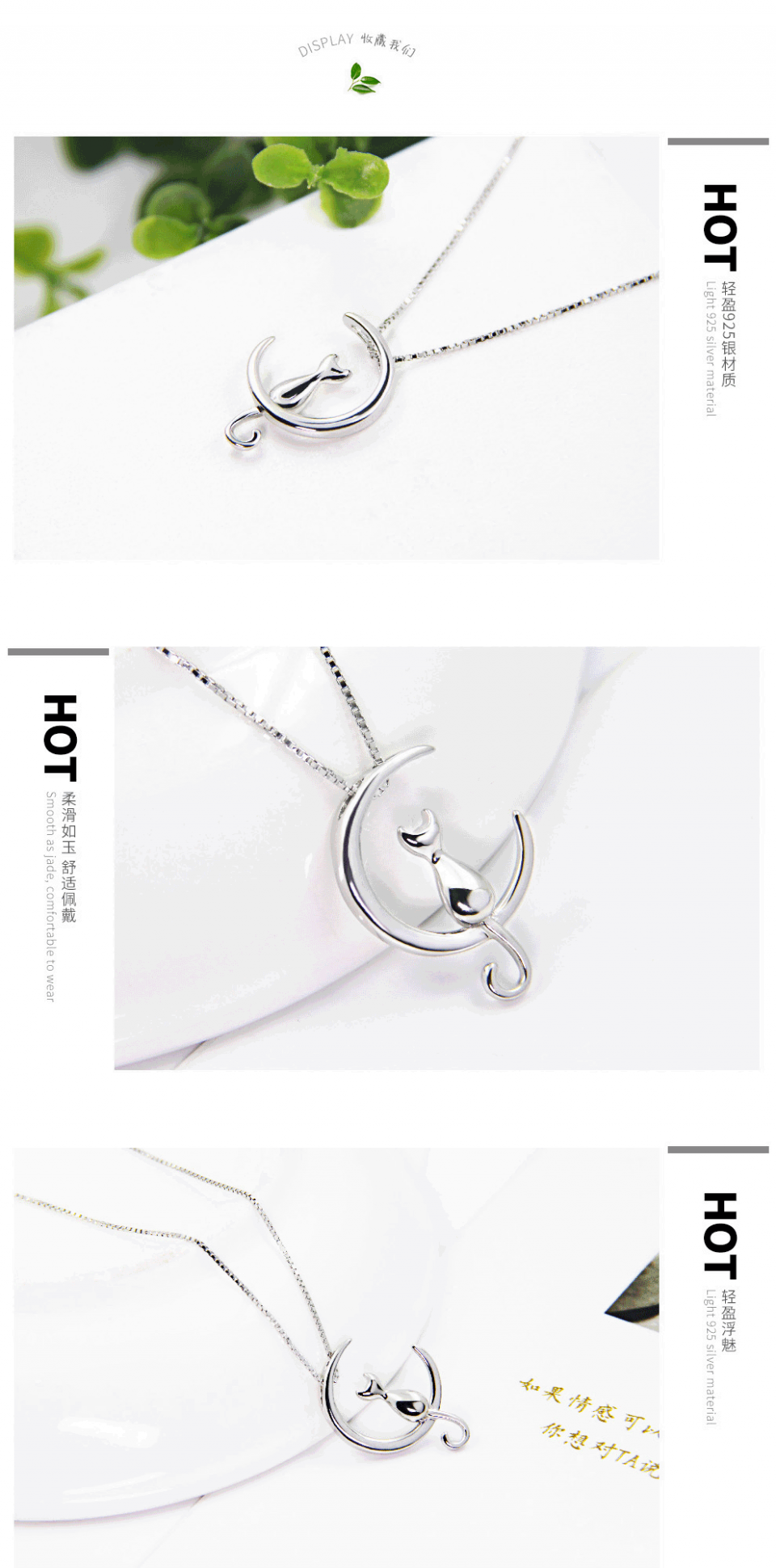 相约银饰S925月亮上的猫 猫星人纯银套链猫系列可爱猫咪