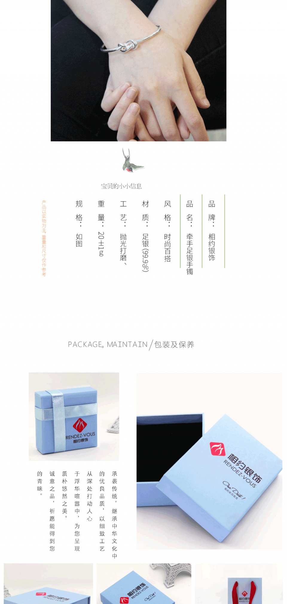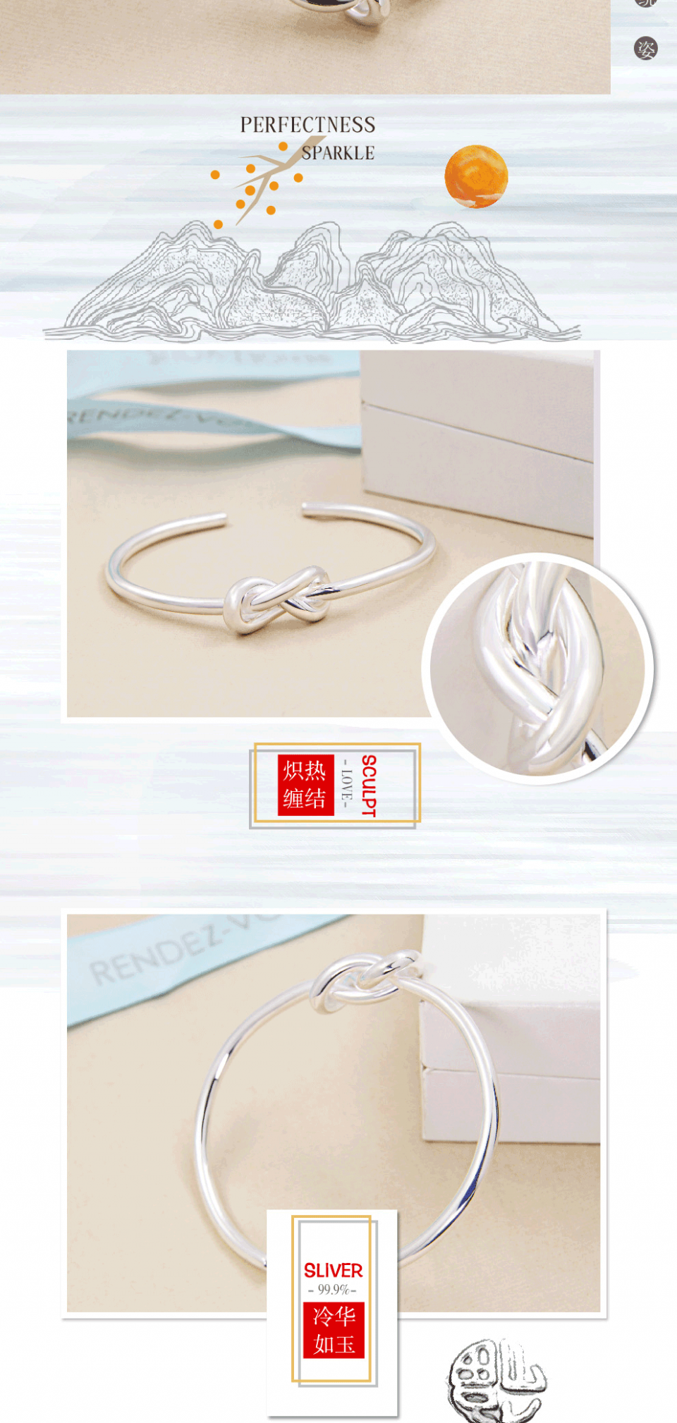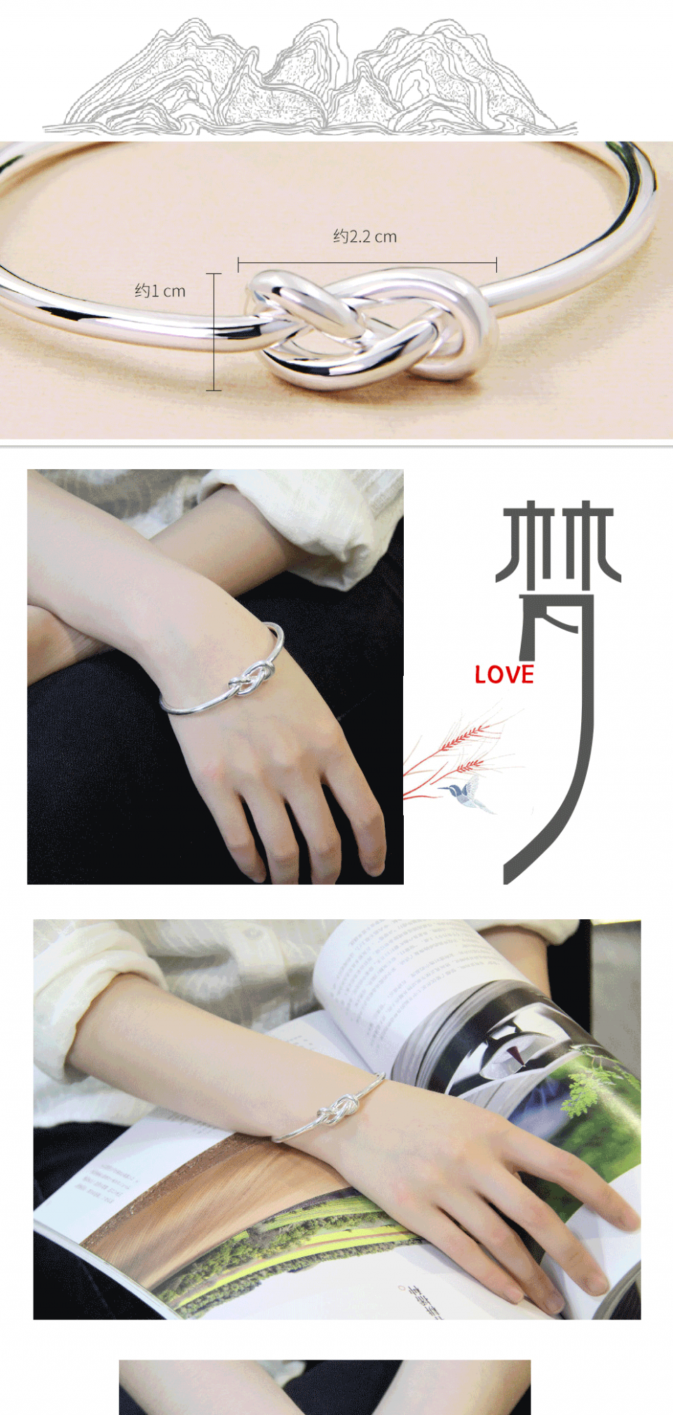 相约银饰同心结情侣银手镯999纯银镯子开口女足银饰品手环送女友生日礼物