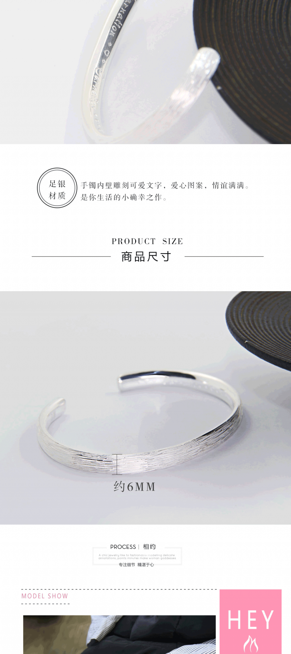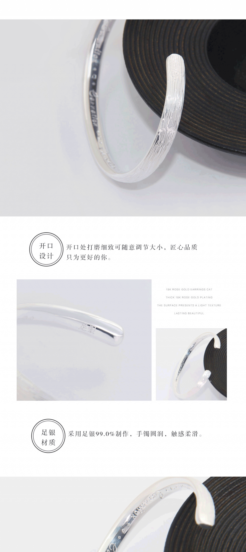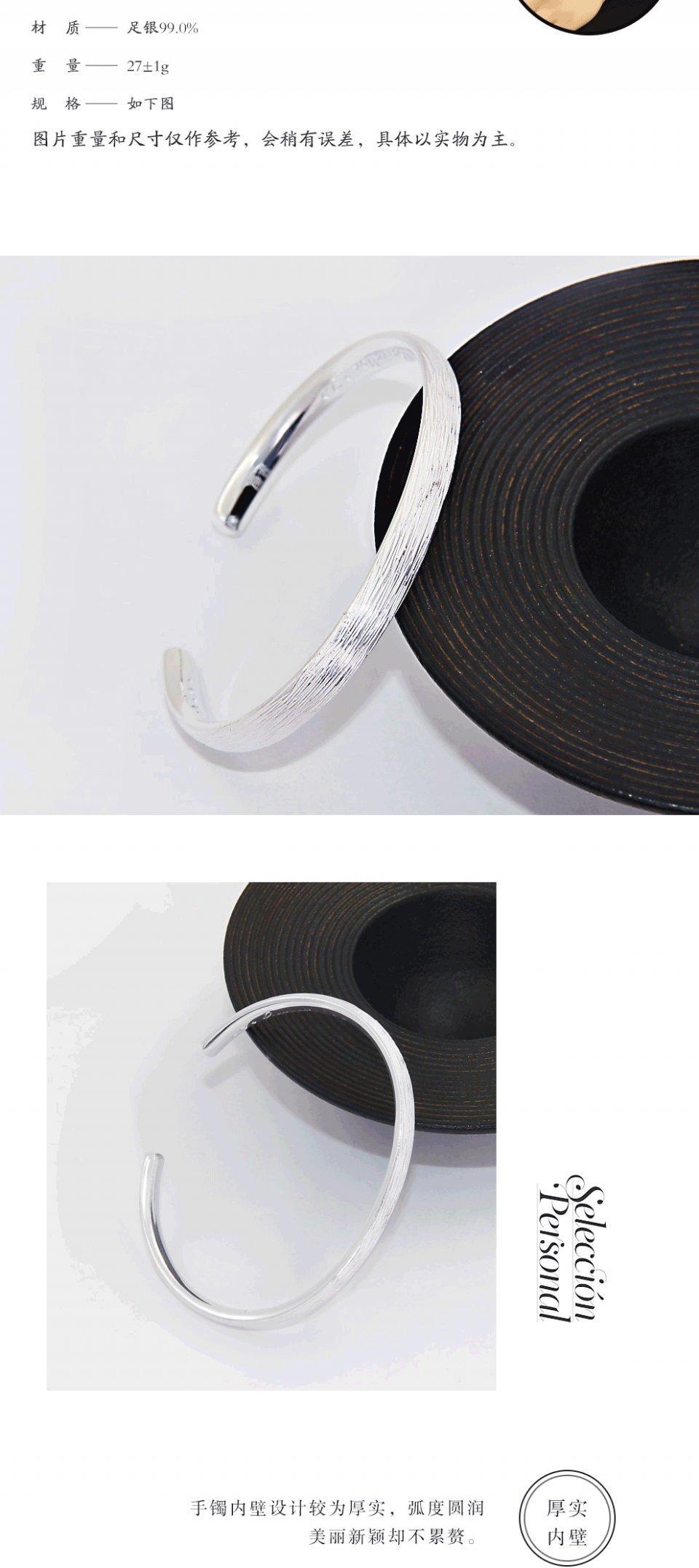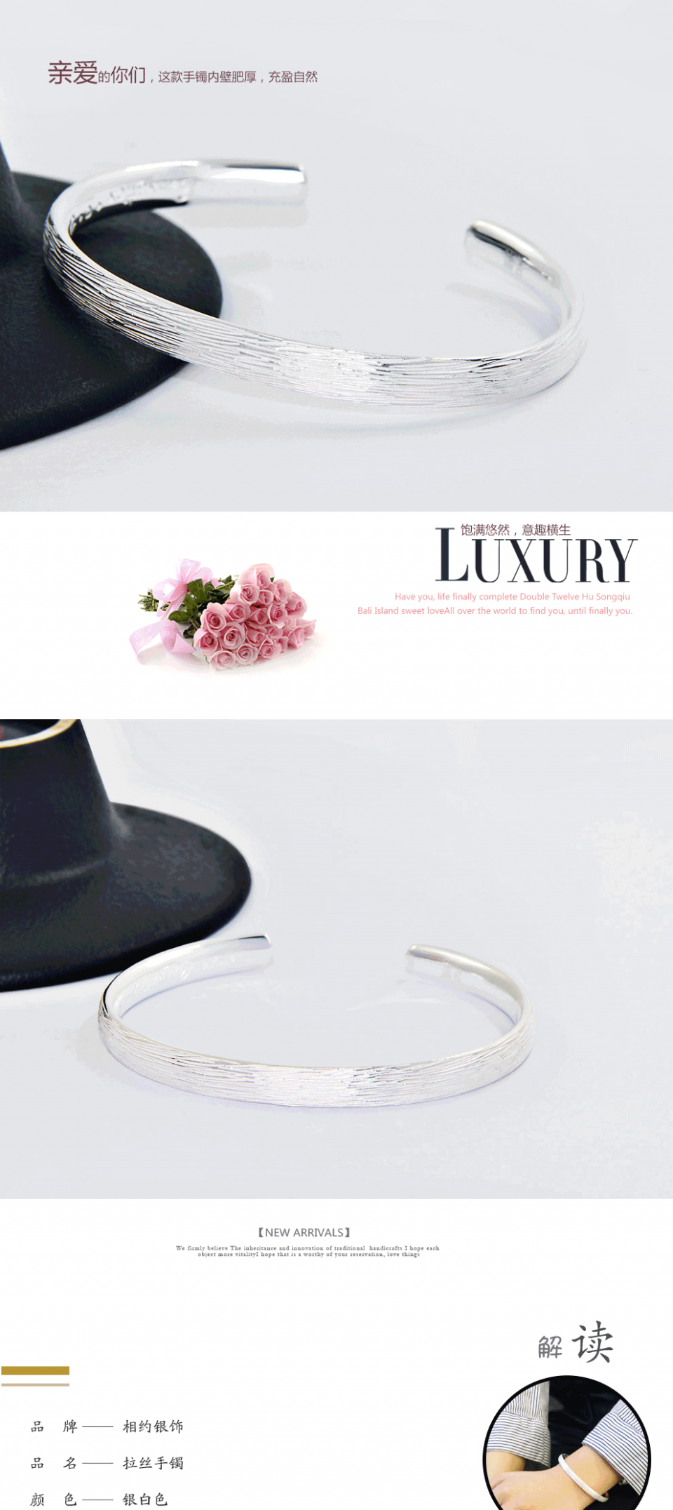 相约银饰 足银99.0%拉丝手镯 【流线款】
