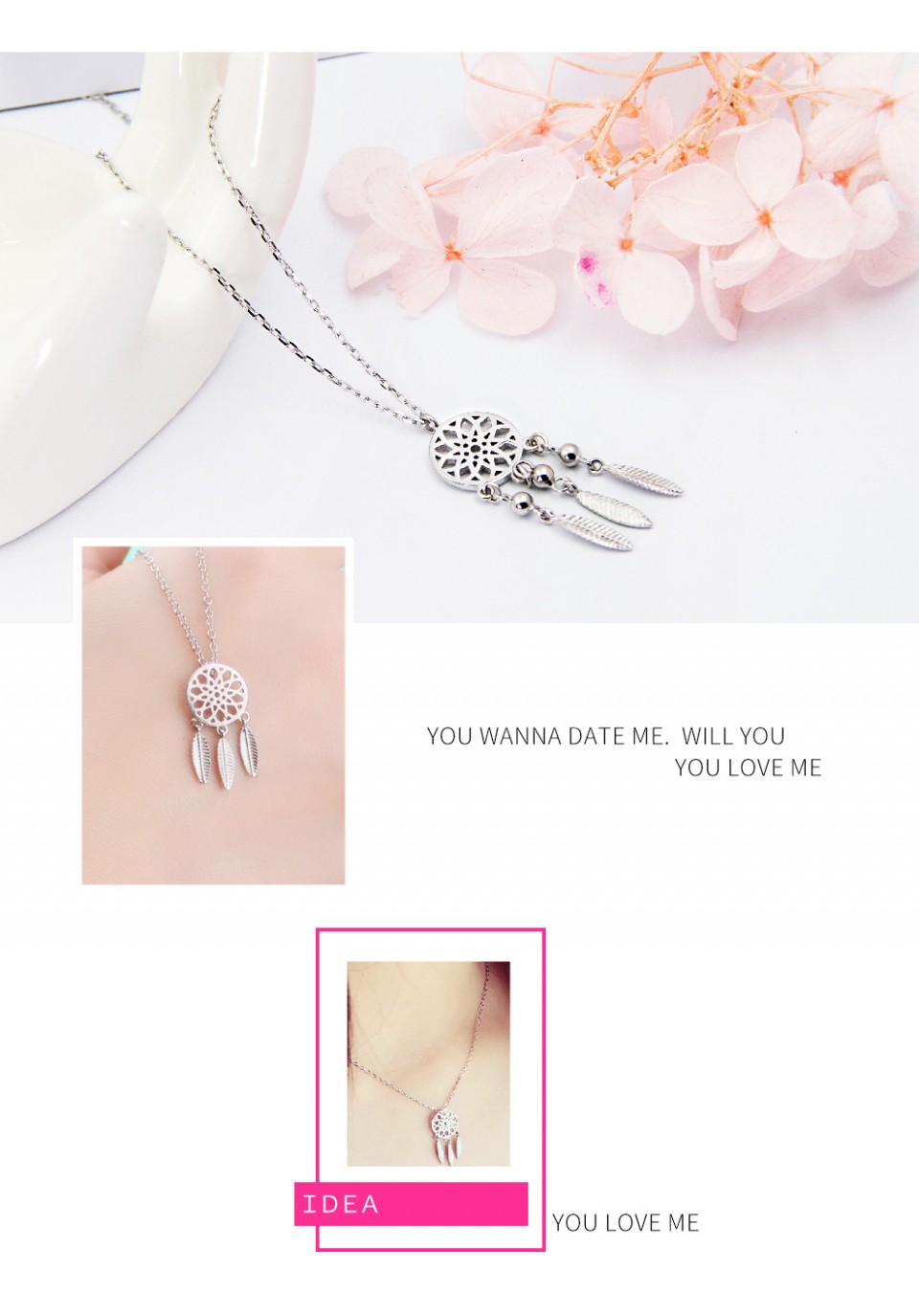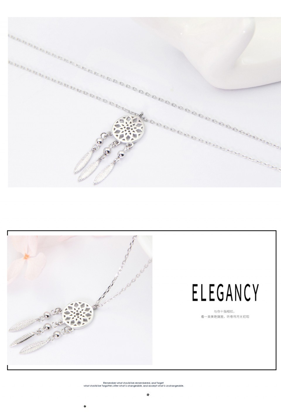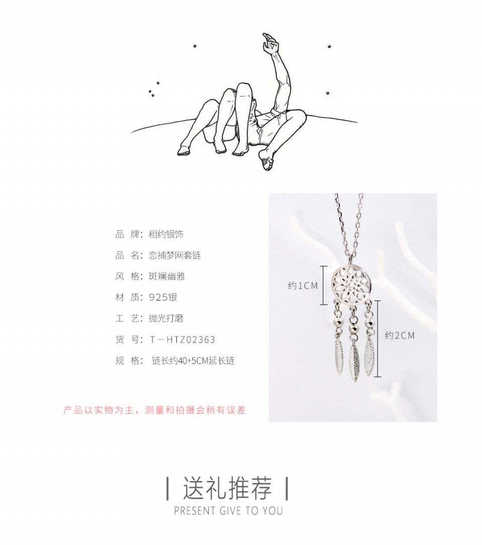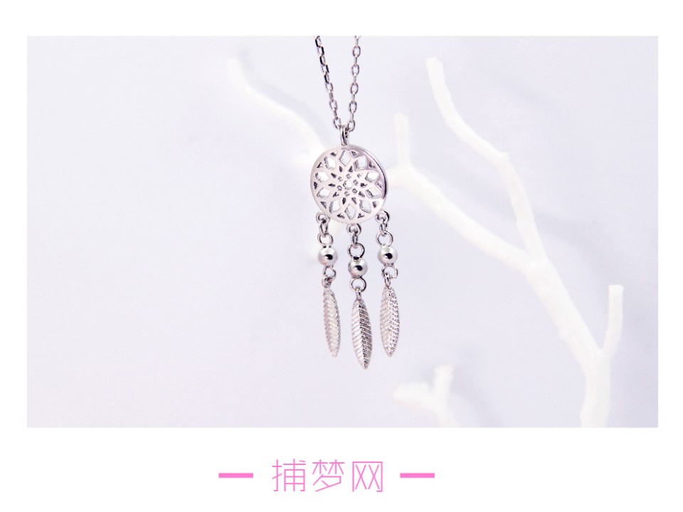 相约银饰时尚新款 捕梦网系列 精致质感镂空羽毛项链