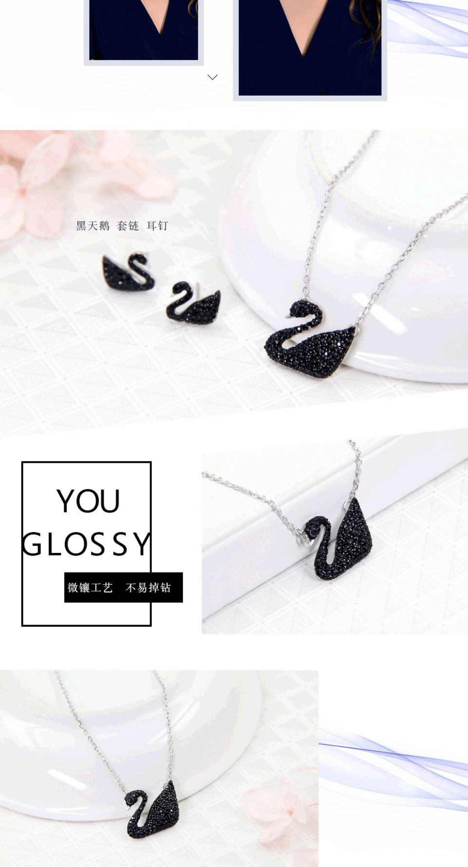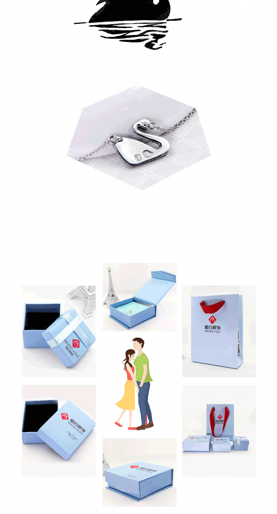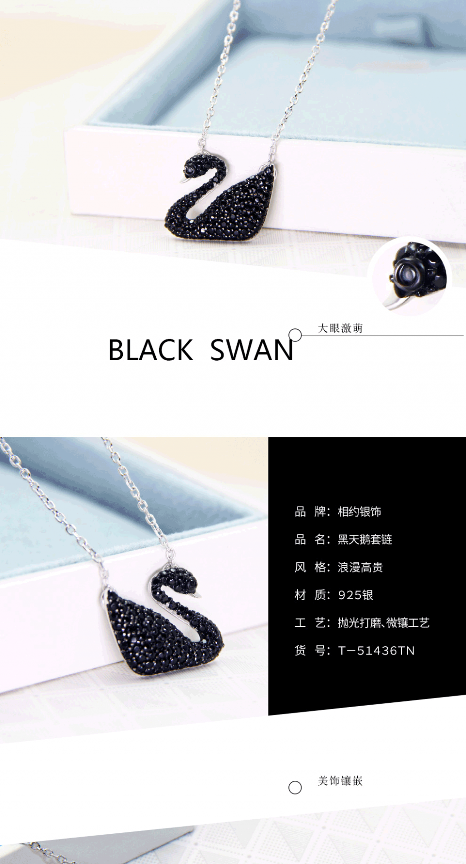 相约银饰925银项链套链黑天鹅施华天鹅洛世奇精美镶钻送女友闺蜜