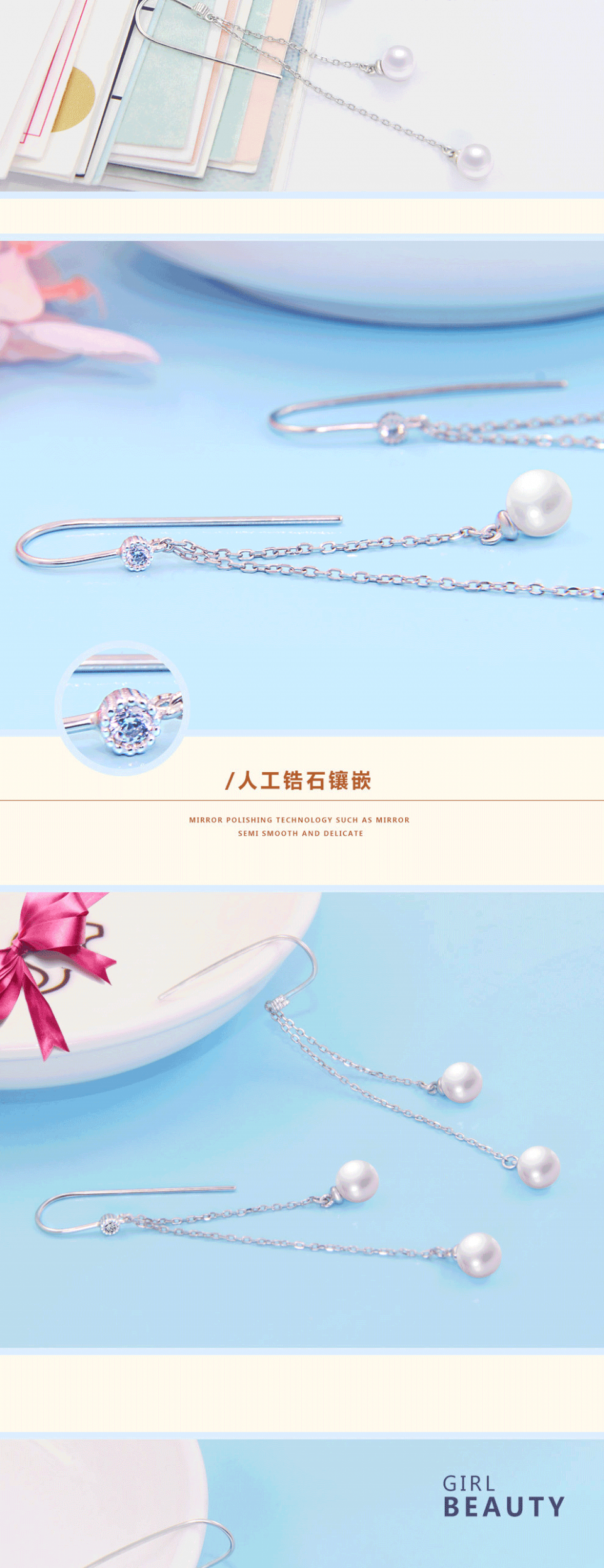 2017新款天然珍珠中长款耳环925纯银简约送女神耳坠 唤醒好时光珍珠耳线耳线