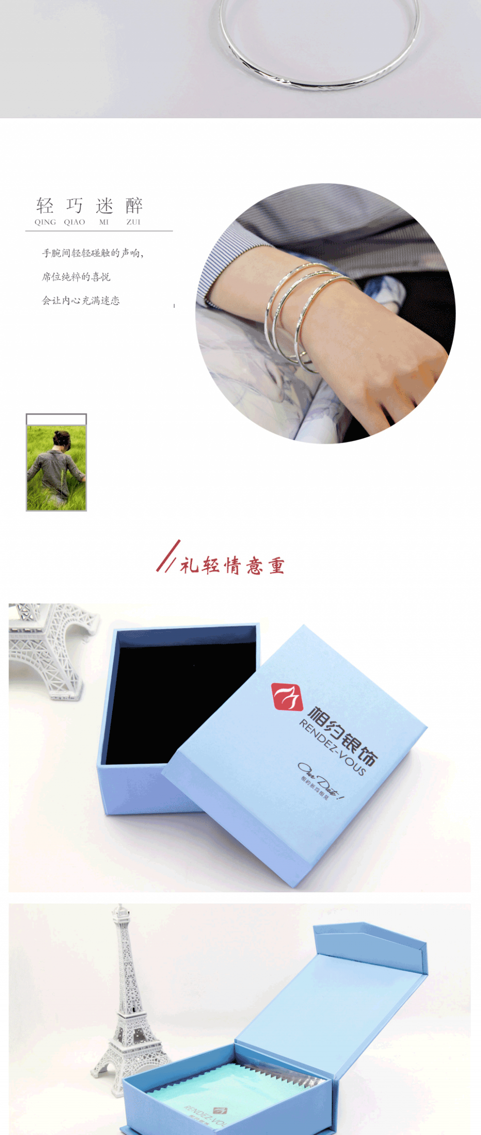 相约银饰S999足银手镯清浅简约套环手镯送女友妈妈闺蜜纯银手镯