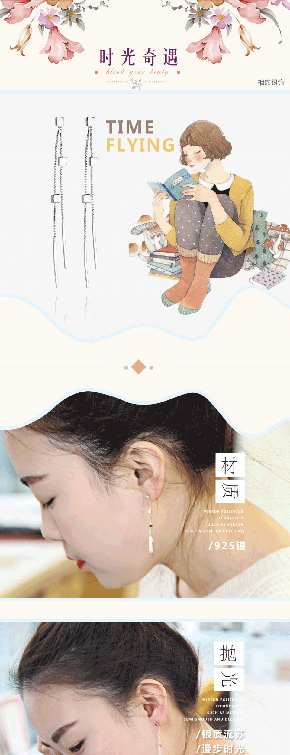 时光奇遇甜美耳线 时尚长款耳环韩国气质淑女时尚少女俏皮活泼百搭耳饰