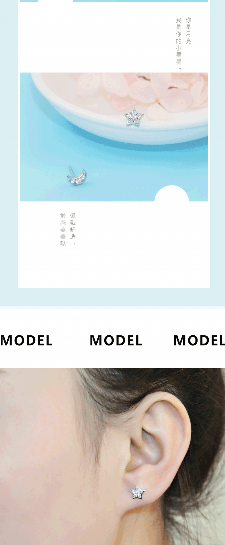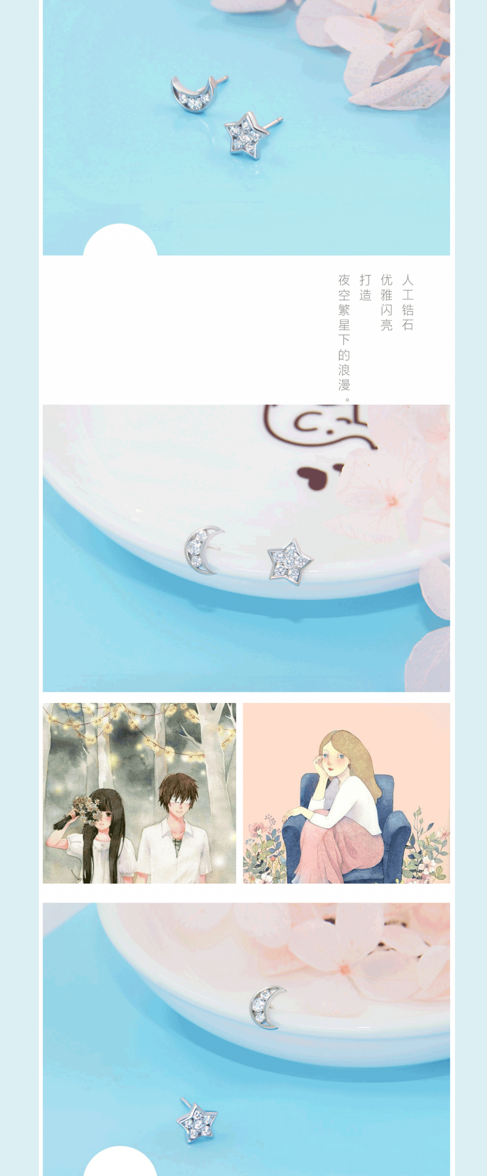 相约银饰时尚简约星星月亮不对称镶钻耳钉耳环女日韩大气精致礼物