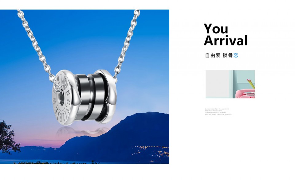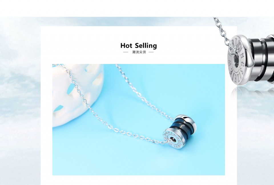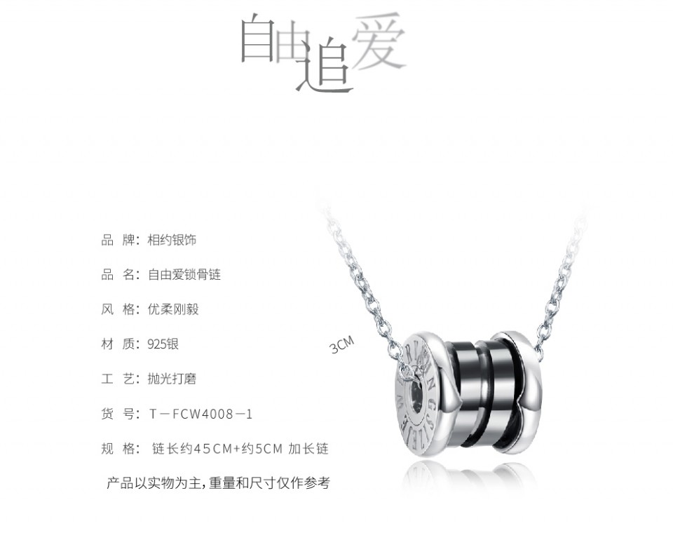 相约银饰黑陶瓷锁骨项链 送女友s925银锁骨链简约女优雅时尚项链