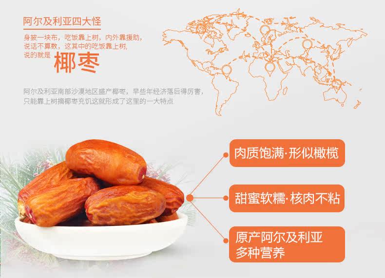 【西域美农_黄金椰枣250g】休闲零食蜜饯干果 红枣蜜枣大枣