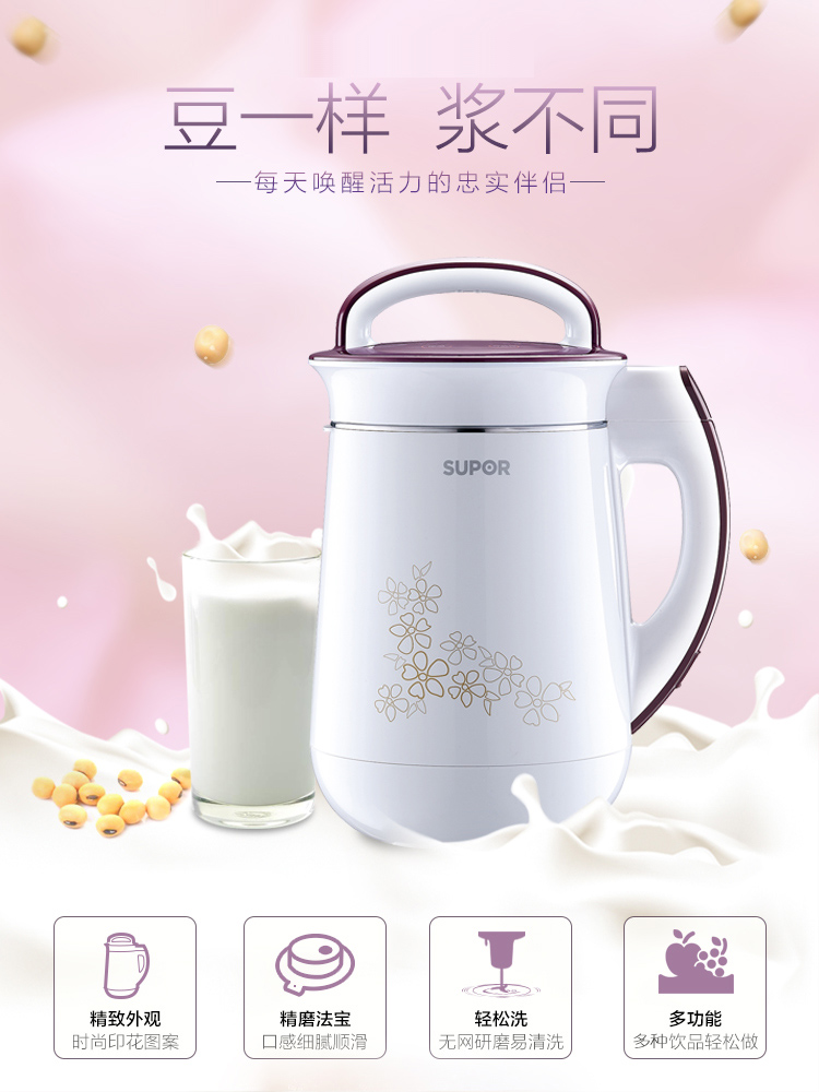 SUPOR/苏泊尔 DJ13B-W23E豆浆机家用多功能全自动加热免过滤