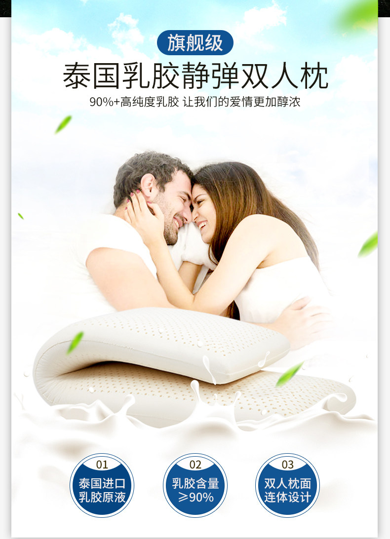 AiSleep/睡眠博士泰国乳胶枕双人枕头情侣枕成人护颈枕长枕头加长