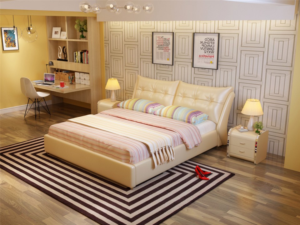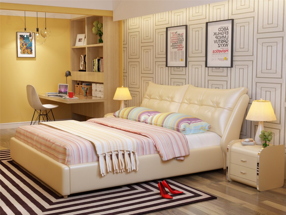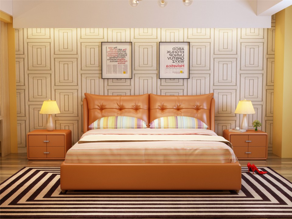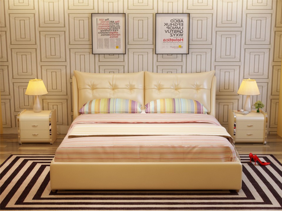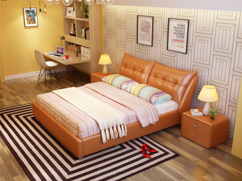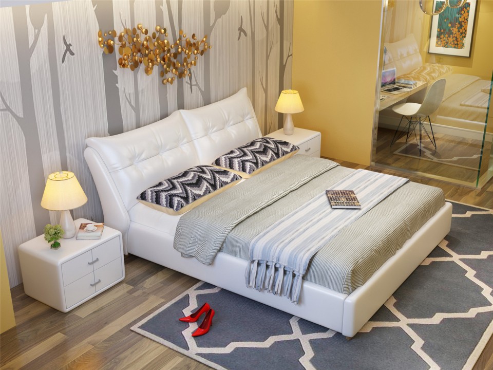 舒纤真皮床1.8米双人婚床现代简约床主卧榻榻米欧式皮艺床家具