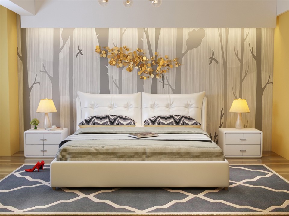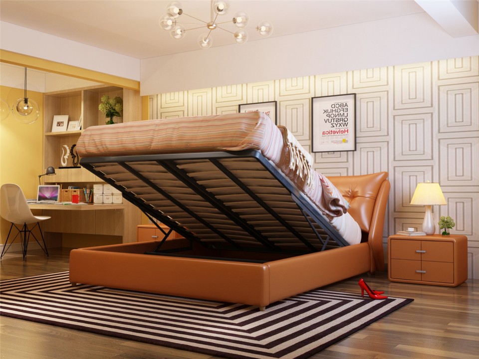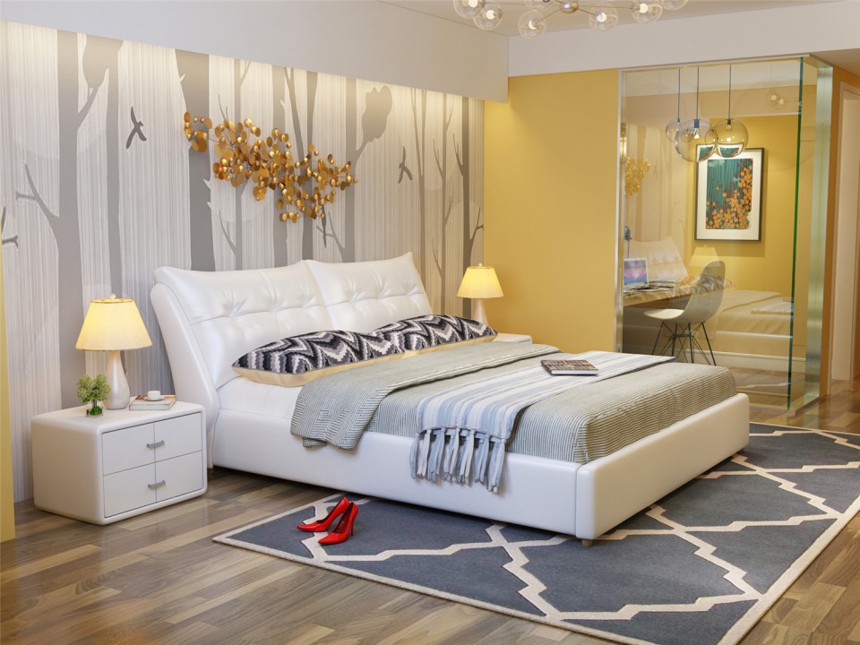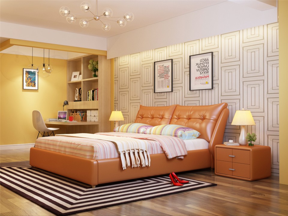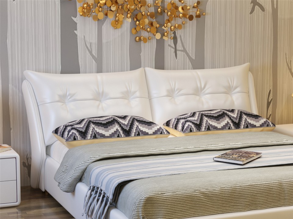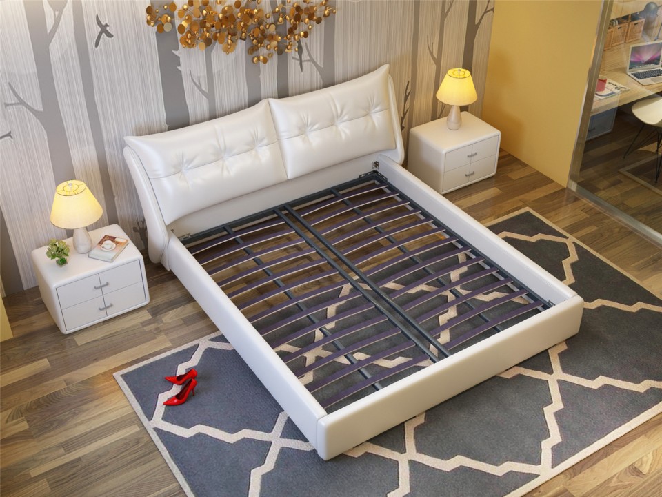 舒纤真皮床1.8米双人婚床现代简约床主卧榻榻米欧式皮艺床家具