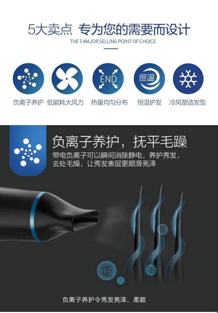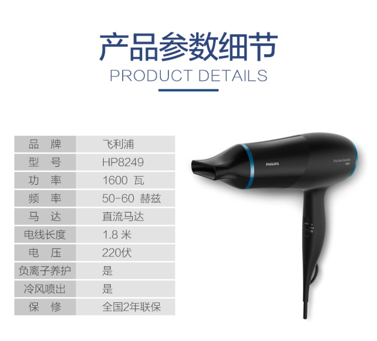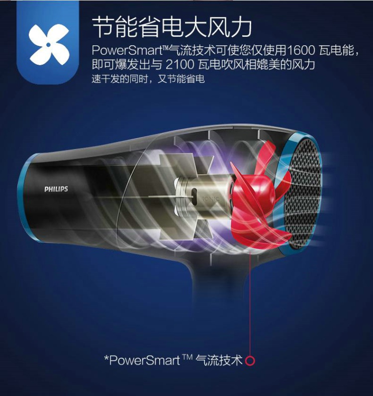 飞利浦(PHILIPS)电吹风 HP8249/05 家用节能负离子恒温护发