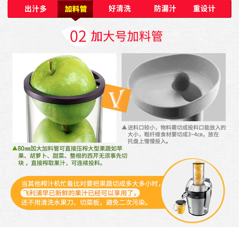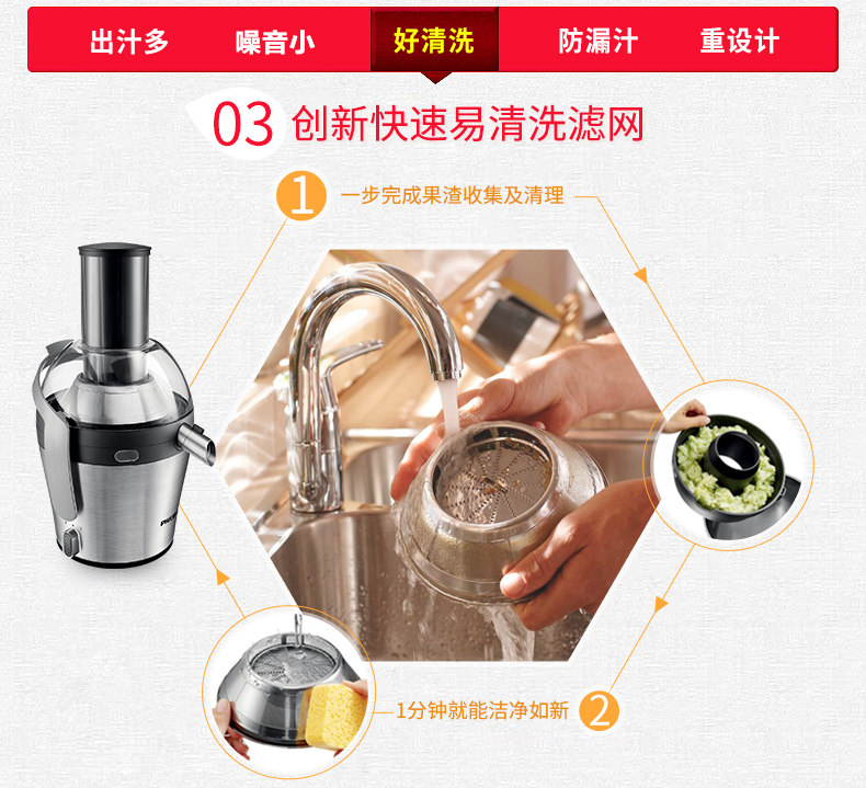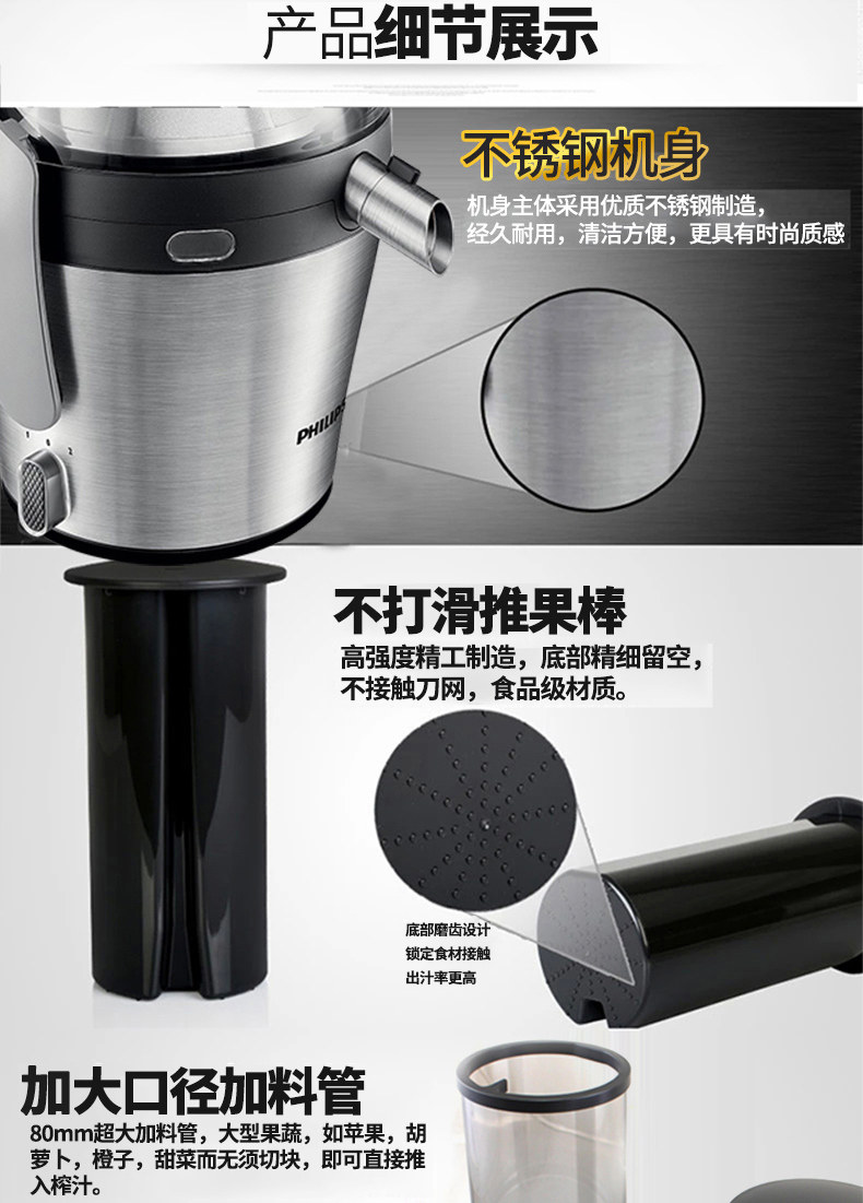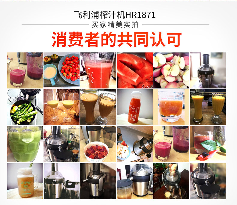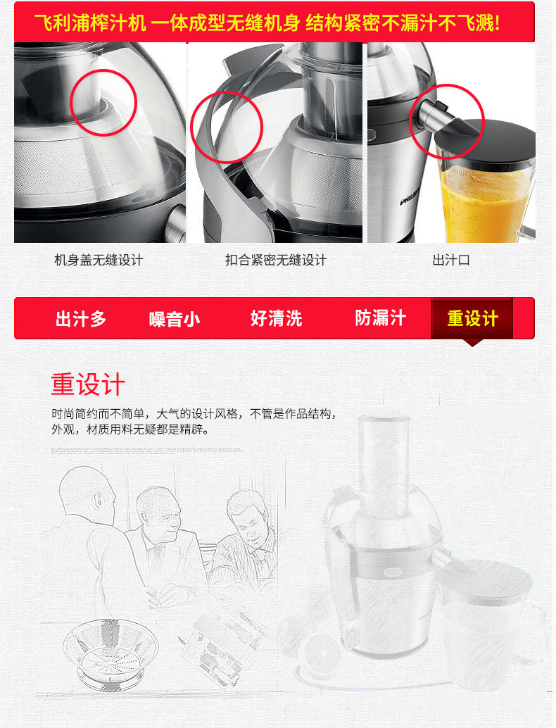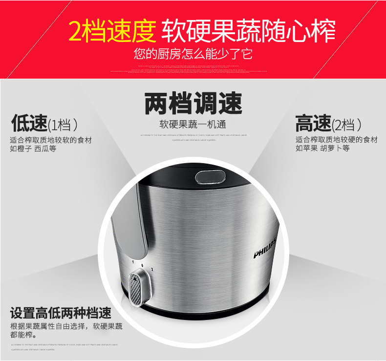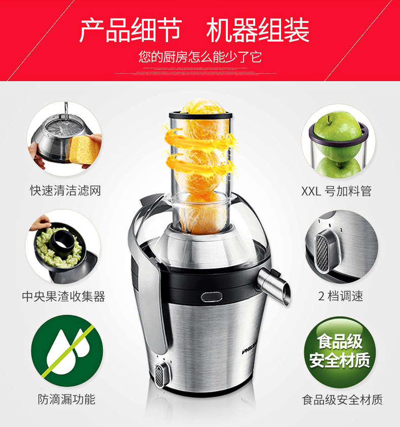 飞利浦(Philips)榨汁机 HR1837/00 2L大容量 易清洗滤网 高出汁率