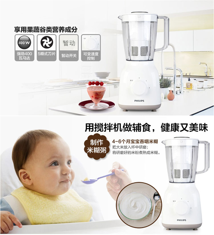 飞利浦(PHILIPS)婴儿辅食机 料理机家用电动搅拌机刨冰机果汁机 HR2101