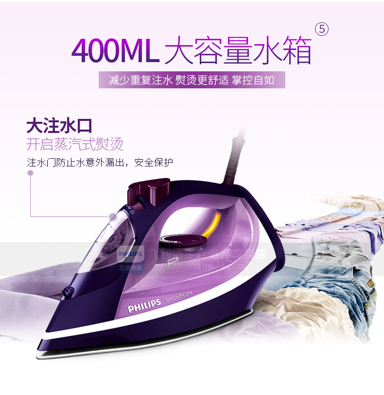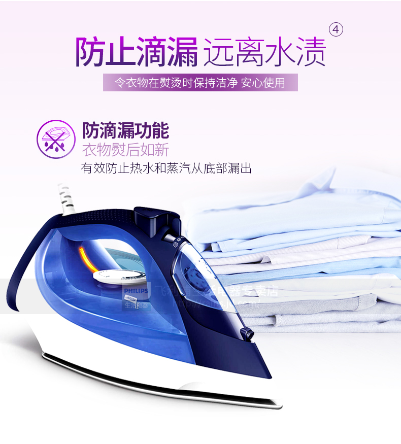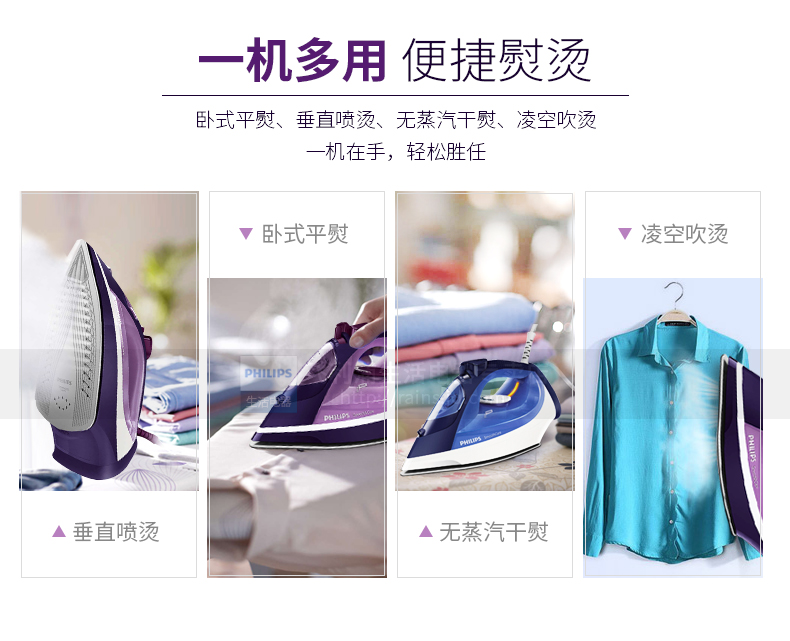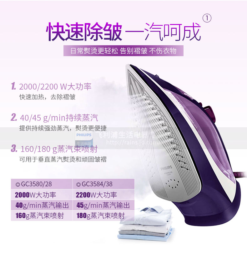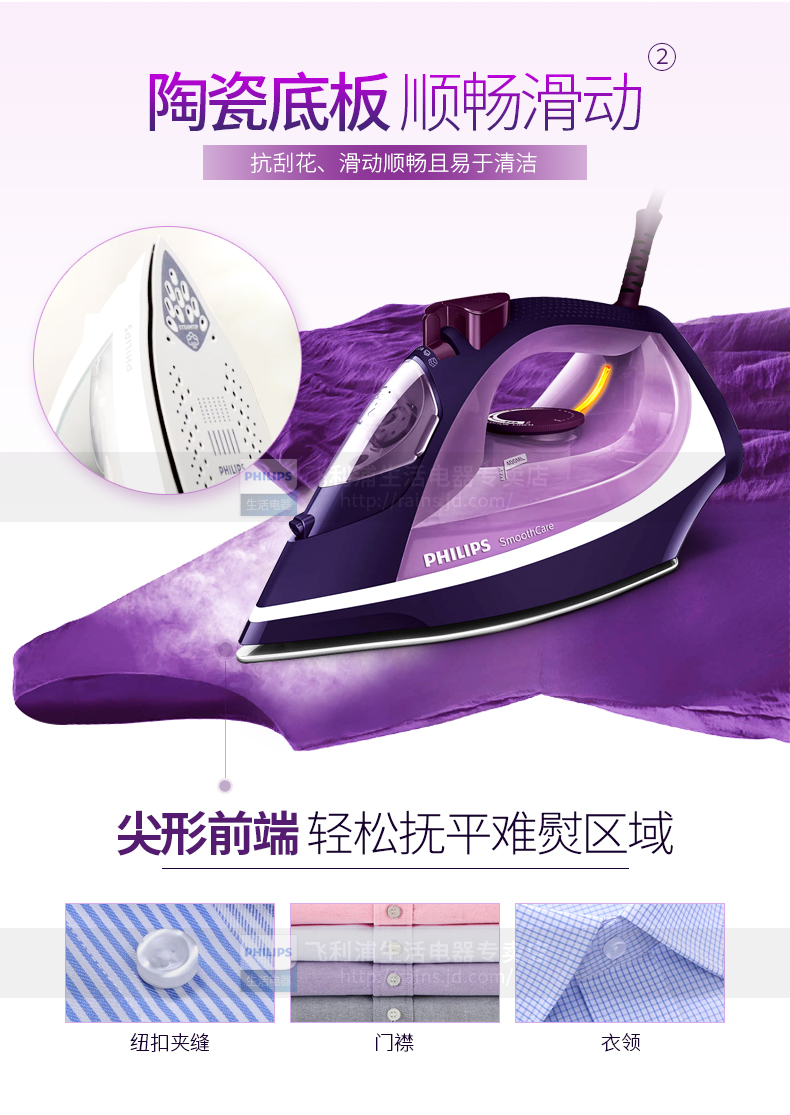 飞利浦(PHILIPS)蒸汽电熨斗家用手持迷你熨斗烫衣机2200W 紫罗兰GC3584/38