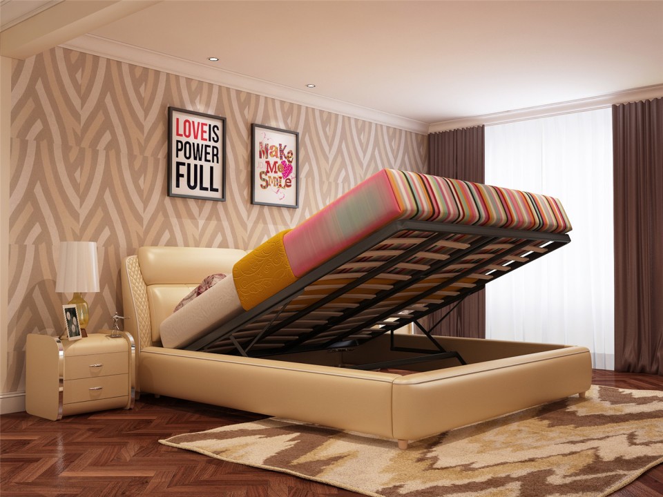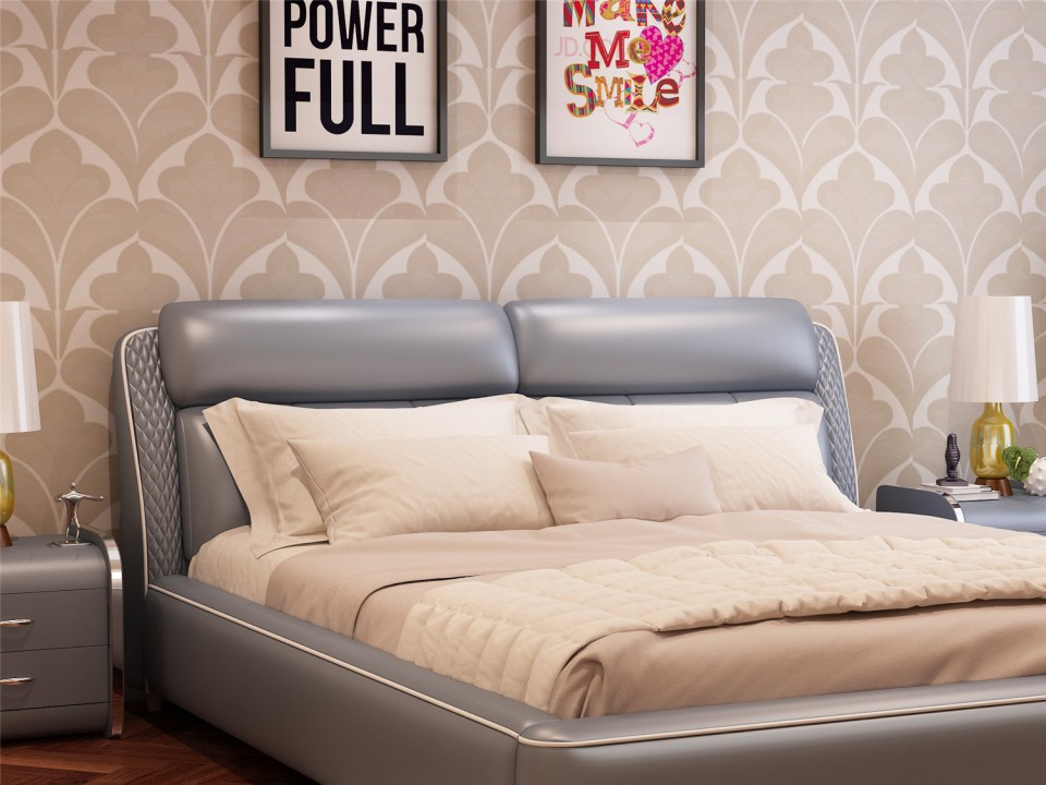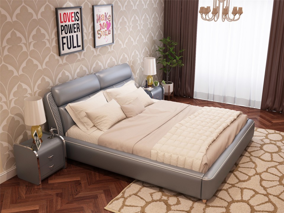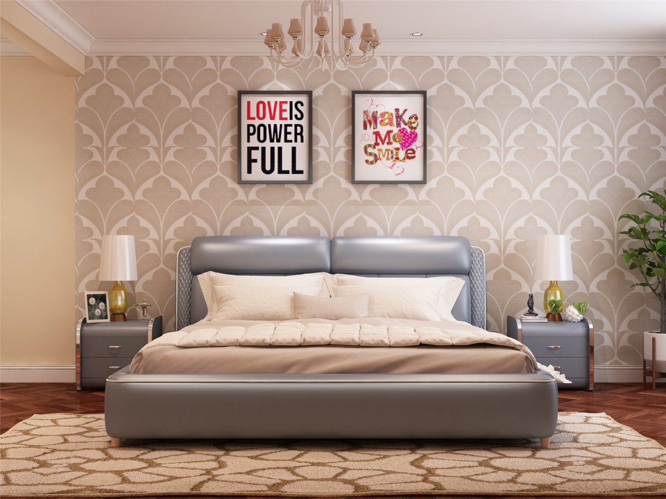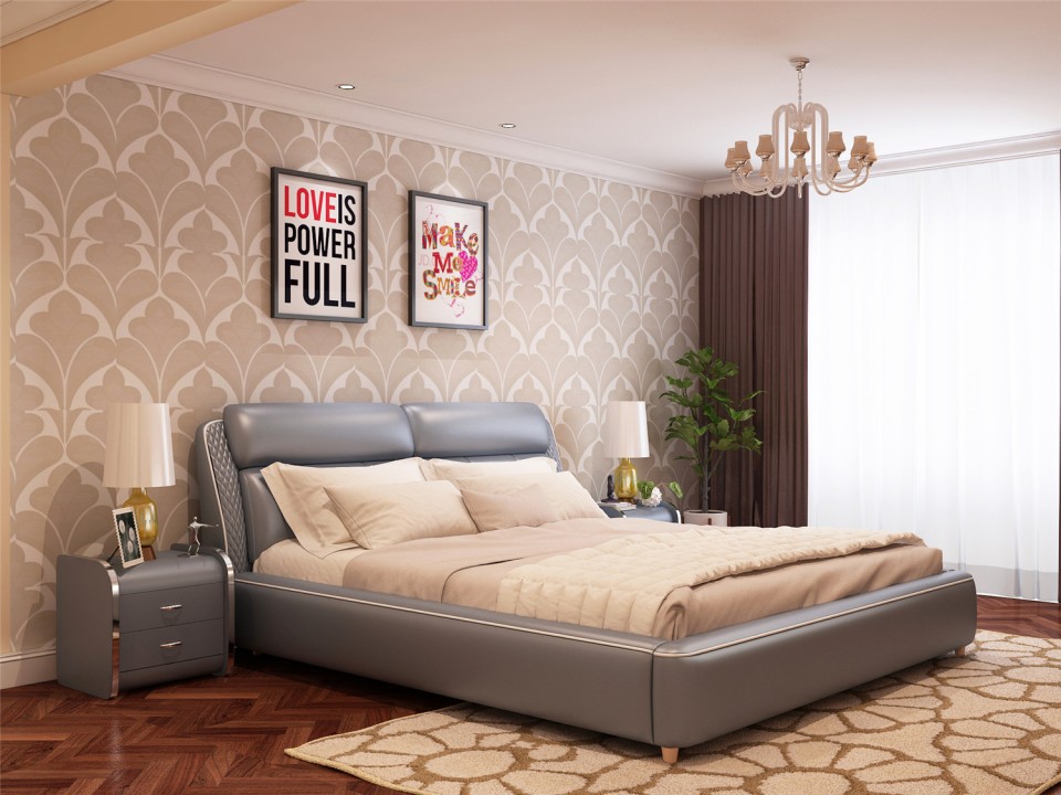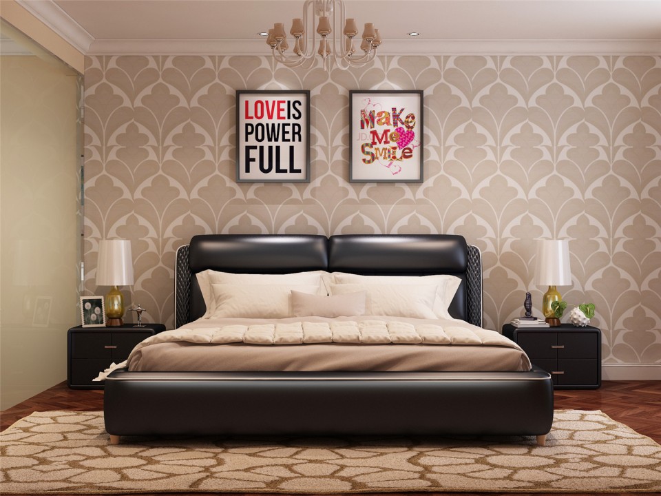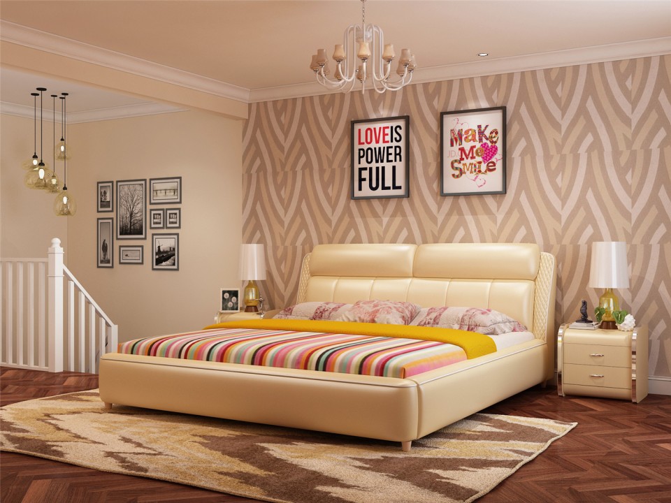 现代简约真皮软床1.5米1.8m双人床 小户型黑色黄色主卧室配套婚床
