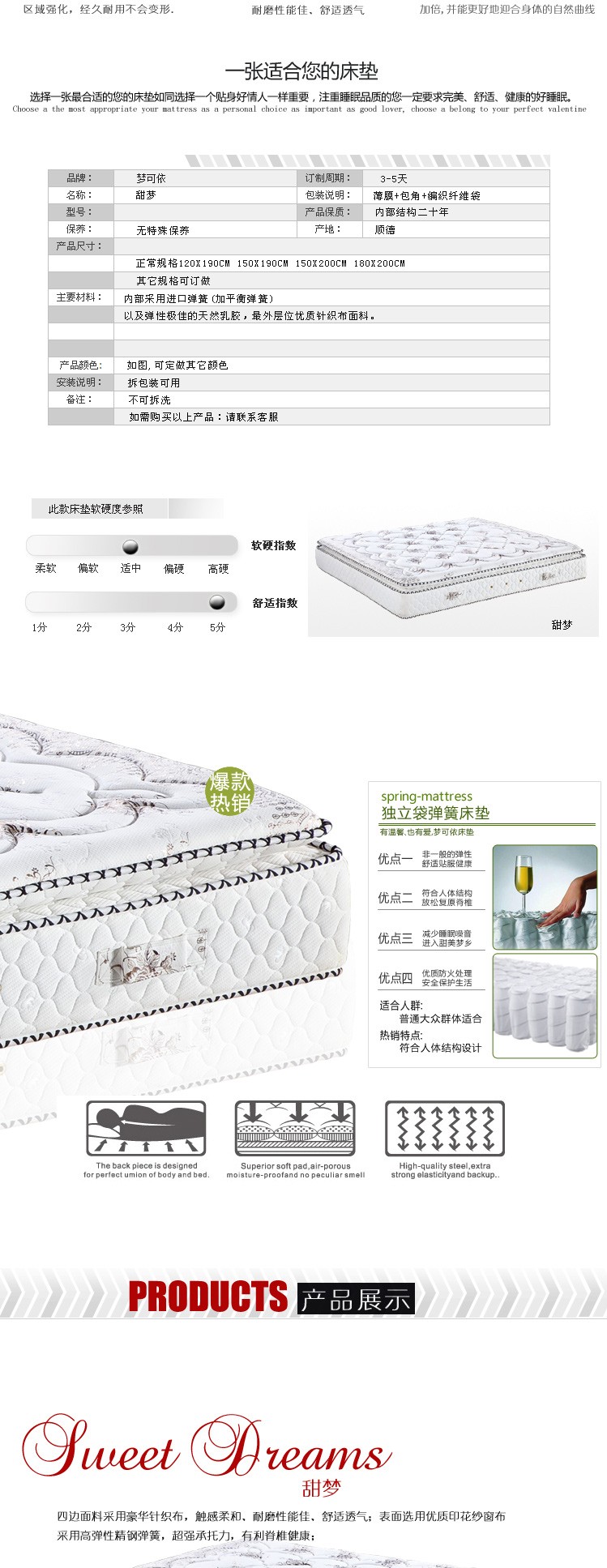 梦可依 甜梦 纯天然椰棕高密度透气绵 通用型环保床垫