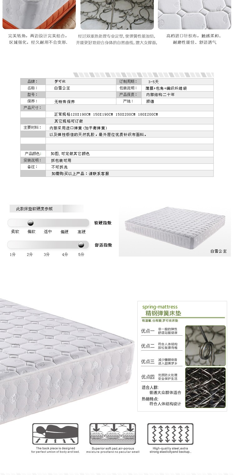 梦可依 白雪公主 纯天然乳胶高密度透气绵