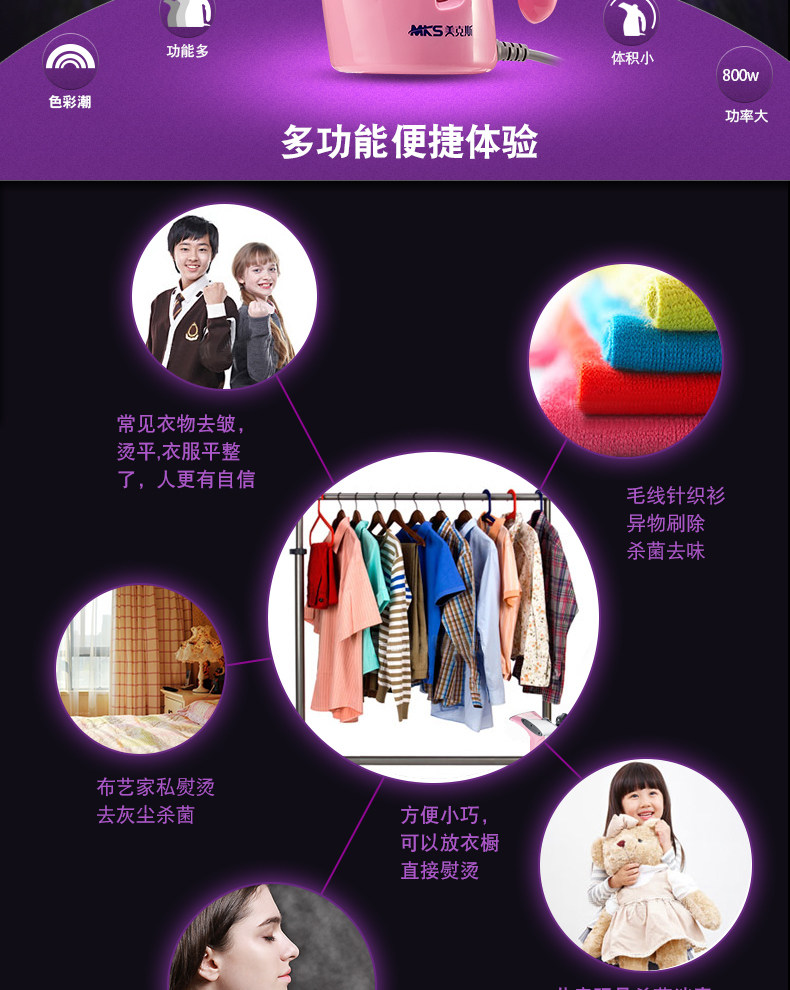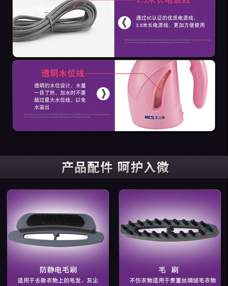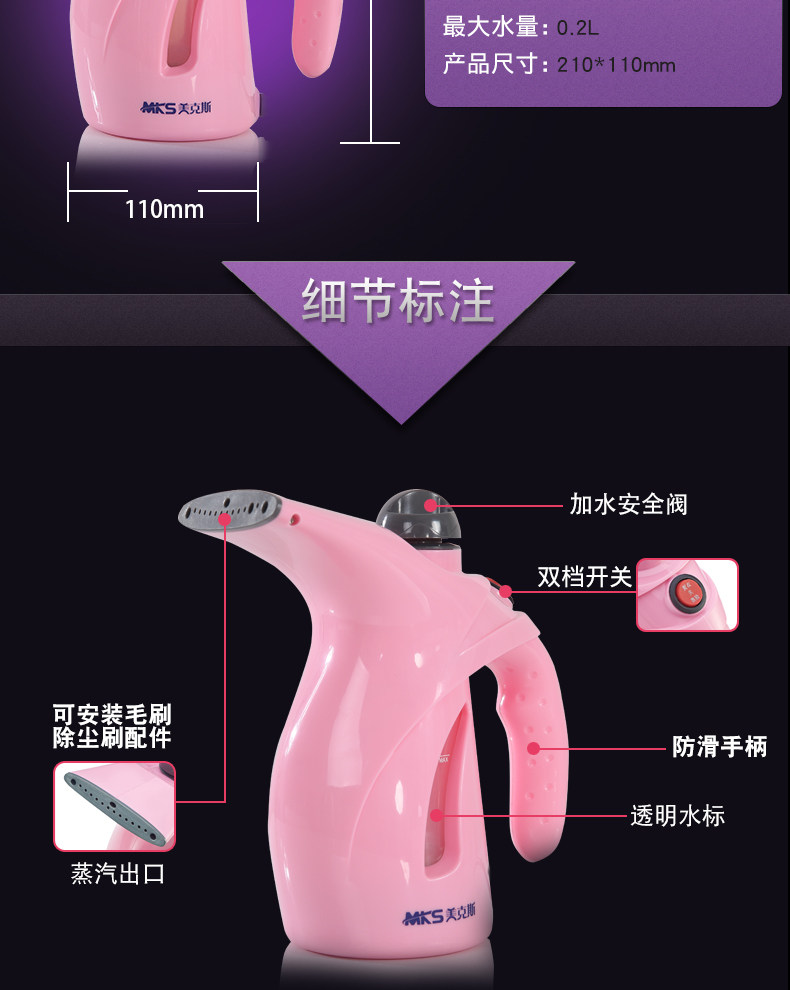 美克斯MKS蒸汽挂烫机 家用手持迷你便携式挂烫机正品包邮熨斗NV316