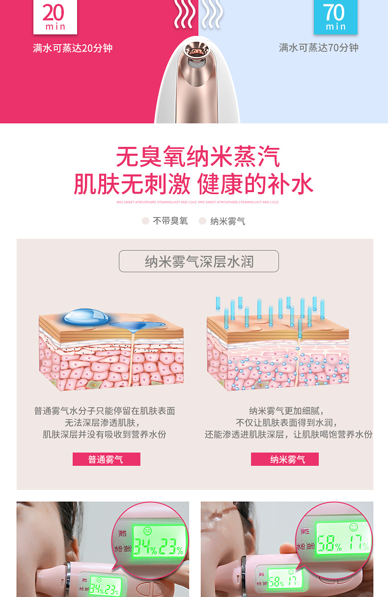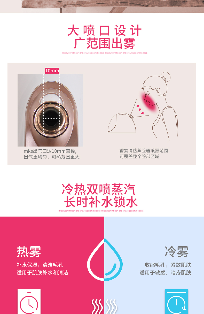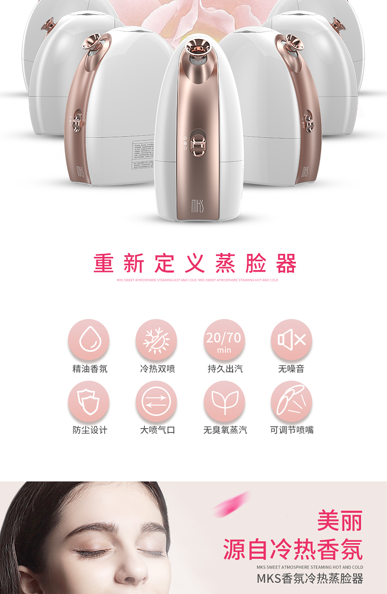 美克斯(MKS)蒸脸器 冷热双喷+可添加果蔬精油 NV8388