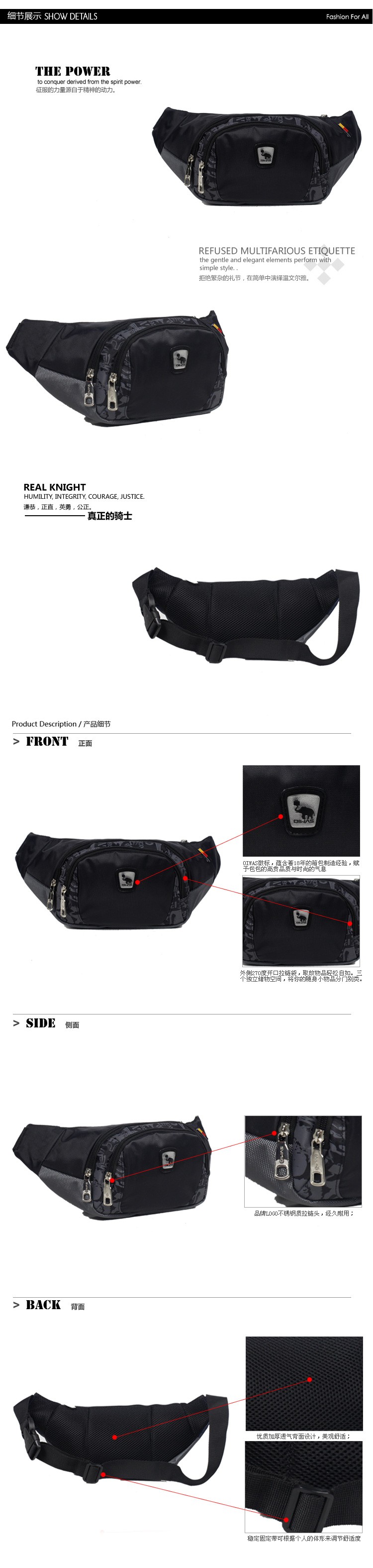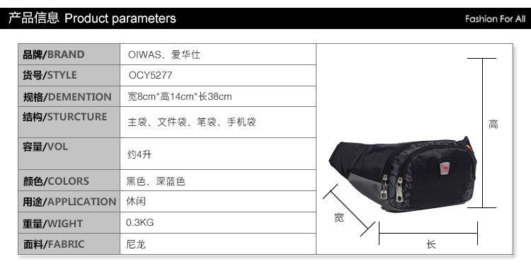 爱华仕(OIWAS)挎包 多功能多收纳 运动休闲腰挎包单肩包 腰包男女 OCY5277