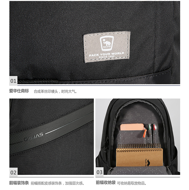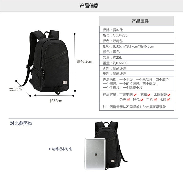 爱华仕(OIWAS)都市时尚 轻量化减压 男商务休闲双肩背包 女韩版潮学院风书包 OCB4286