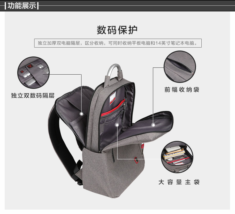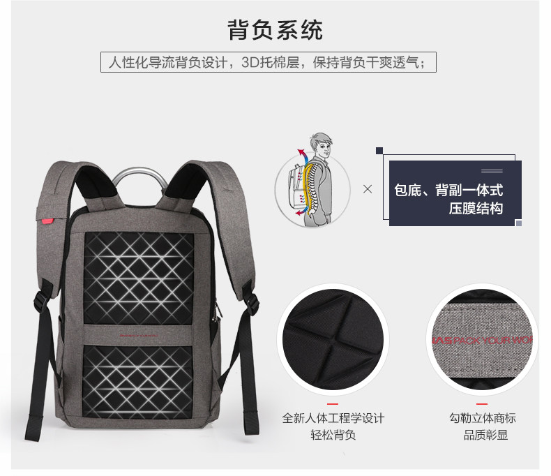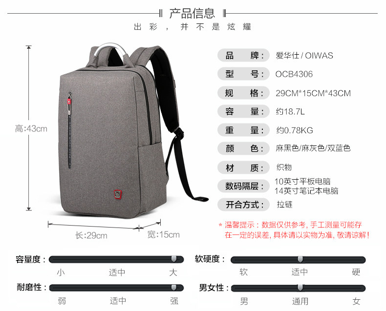 爱华仕(OIWAS)商务电脑包双肩男士多功能时尚休闲潮流书包双数码层背包女 OCB4306