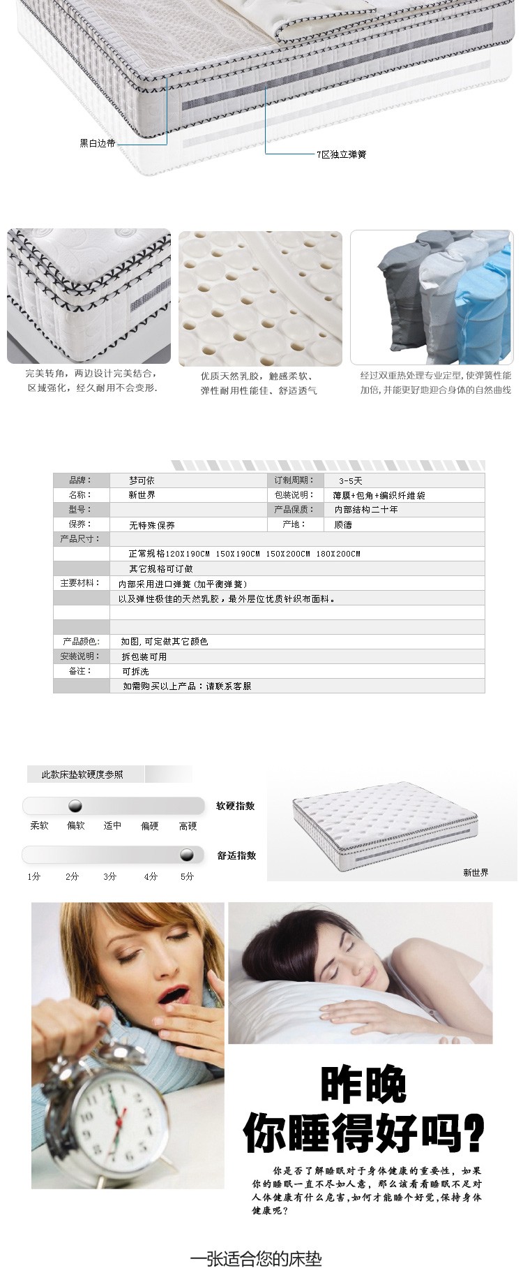 梦可依 新世界纯天然乳胶床垫 环保床垫通用