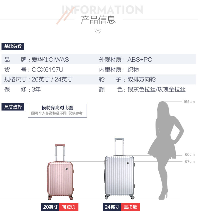 爱华仕(OIWAS)拉杆箱男万向轮旅行箱包密码箱行李箱男女拉杆箱 OCX6197U