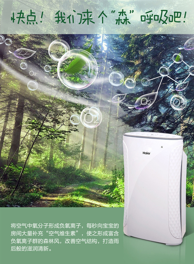 Haier/海尔空气净化器KJ180F-HY01家用负离子智能除甲醛雾霾PM2.5