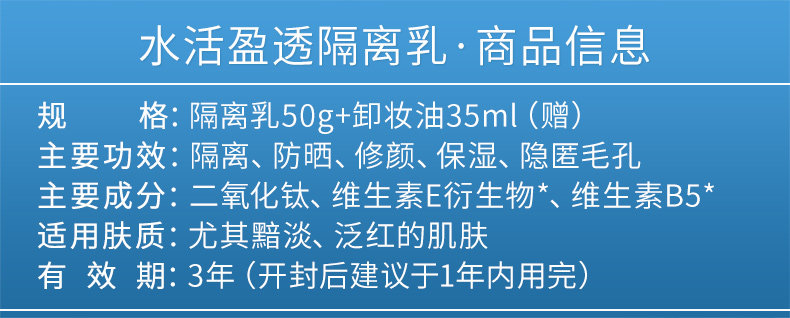 温碧泉水活盈透隔离乳防晒霜面部补水保湿遮瑕防水紫外线