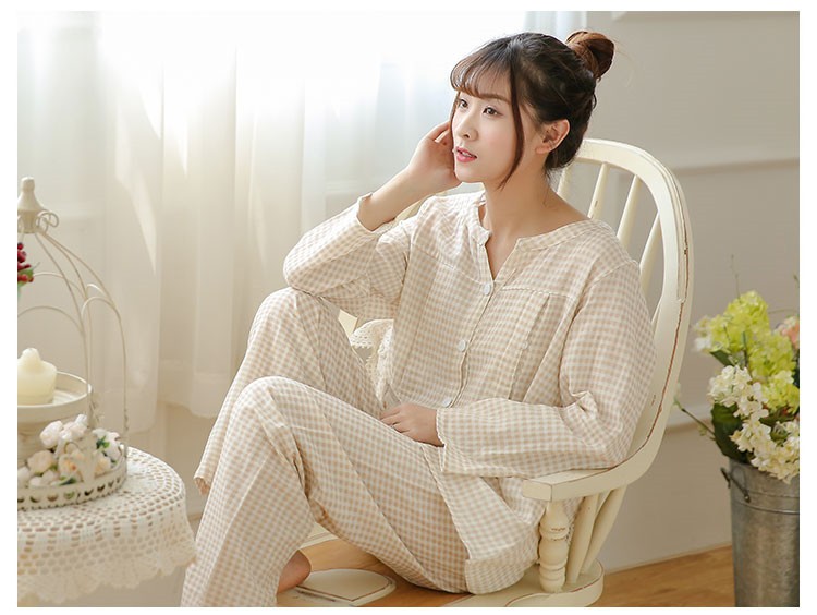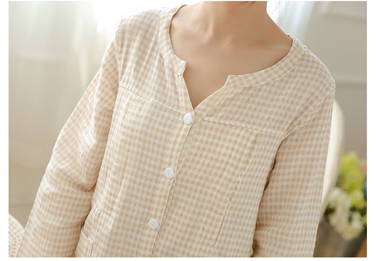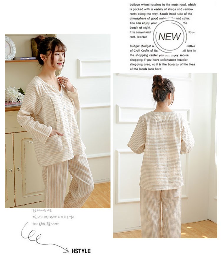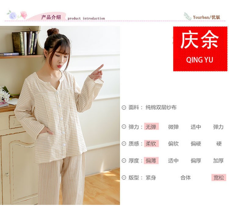 纯棉双层纱布睡衣月子服哺乳衣 灰格子