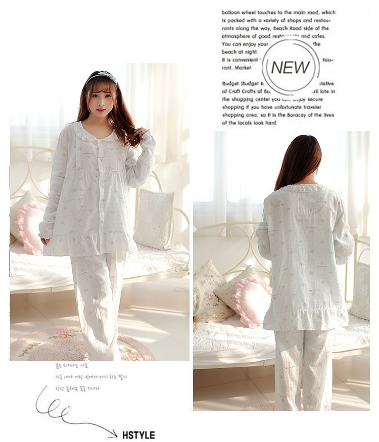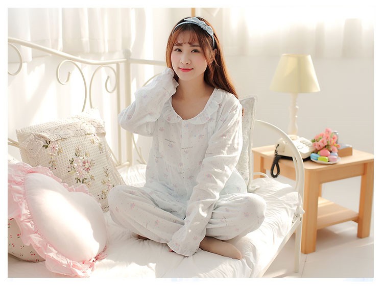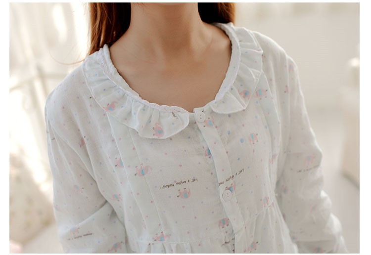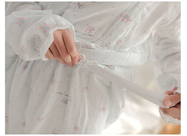 纯棉双层纱布睡衣月子服哺乳衣 绿小象