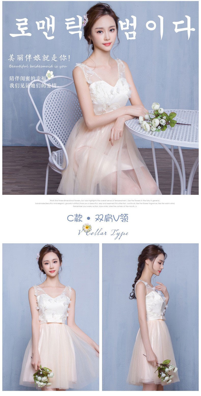 2016新款韩式伴娘团礼服香槟色小礼服姐妹裙伴娘服短款