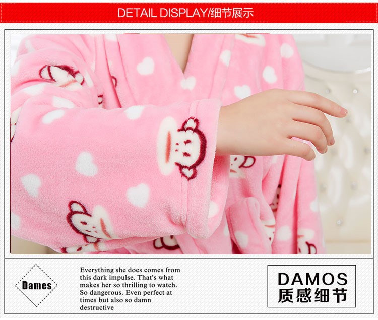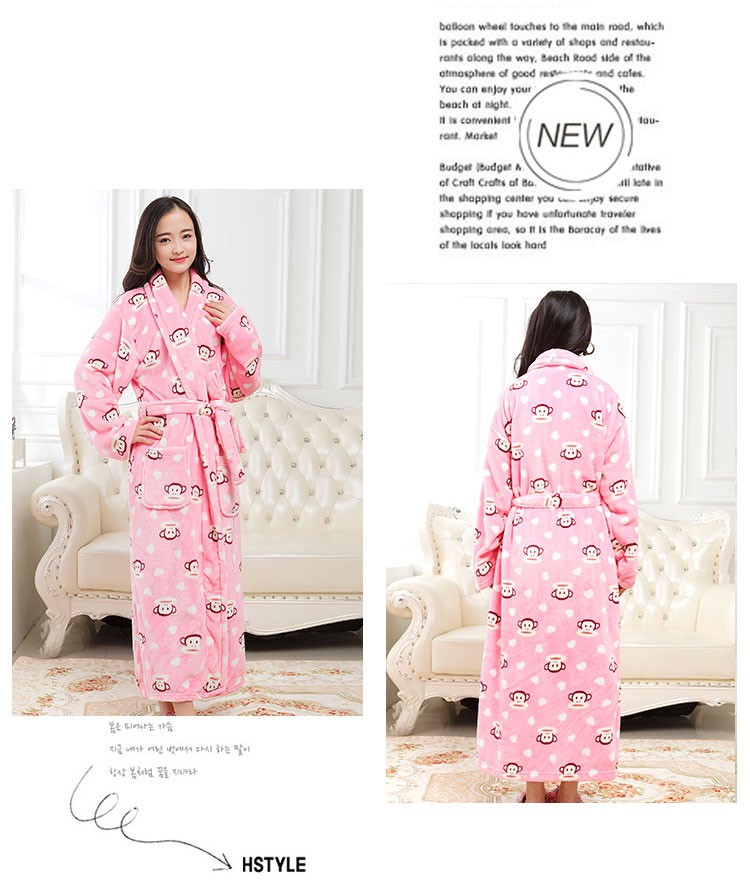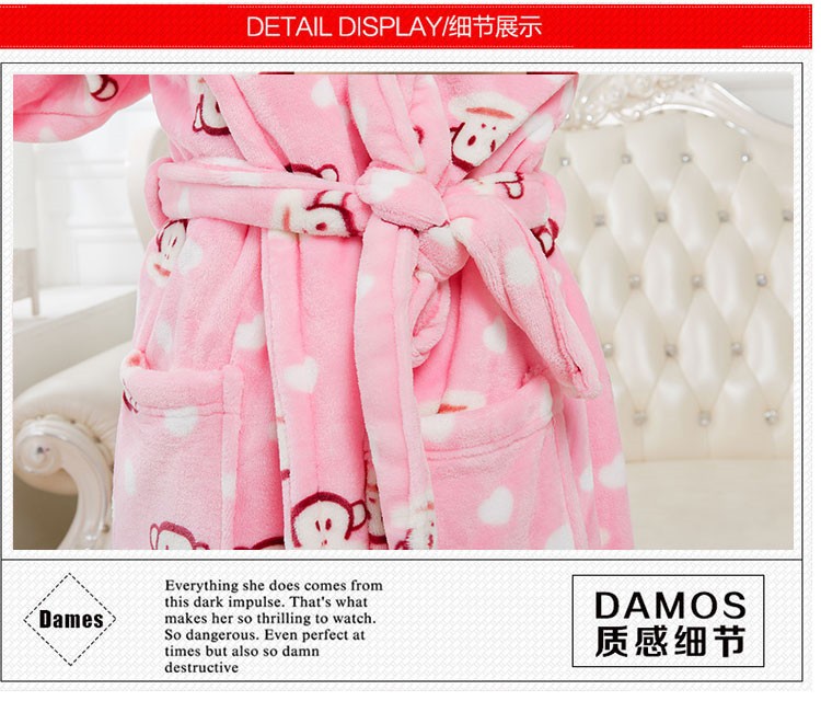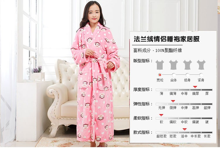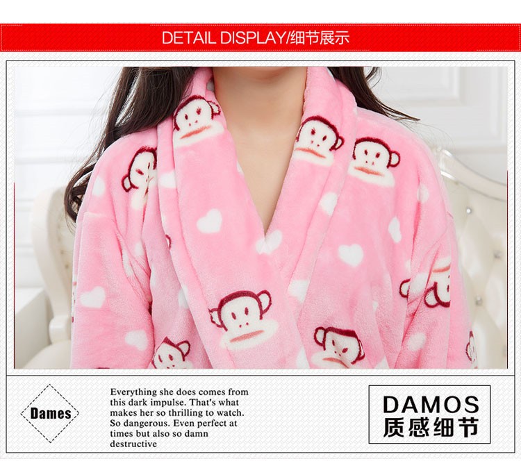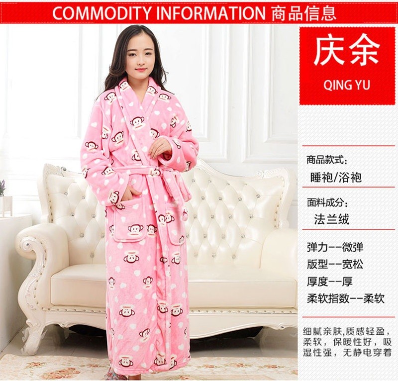 法兰绒加厚保暖睡袍浴袍 大嘴猴