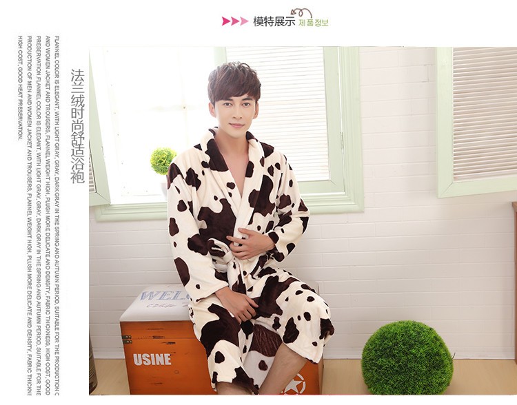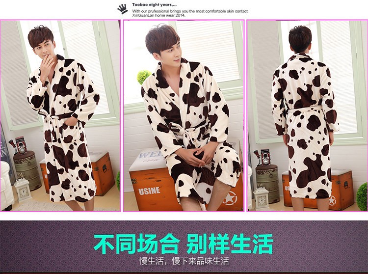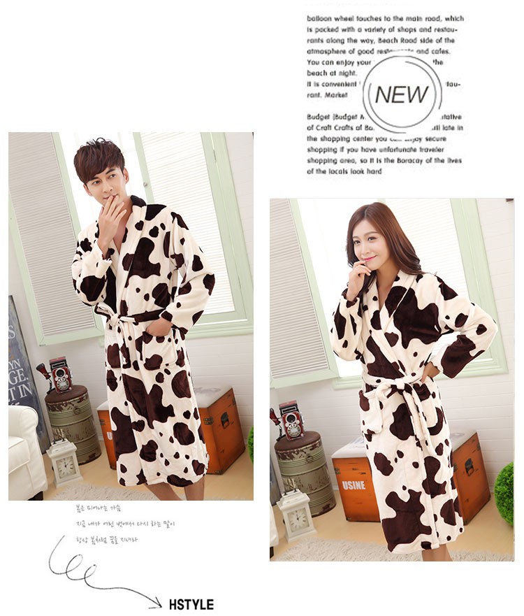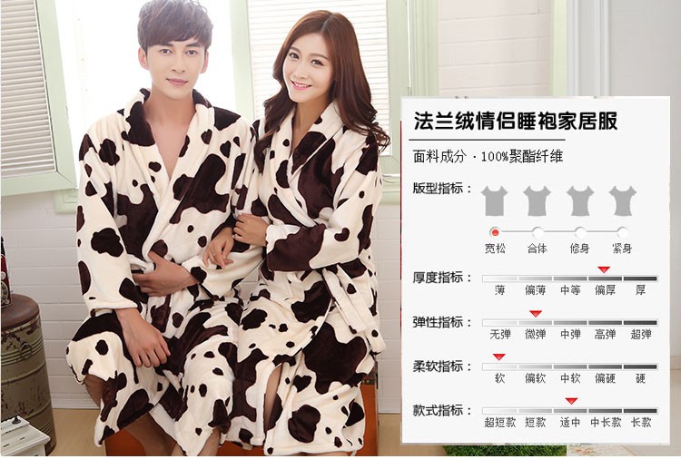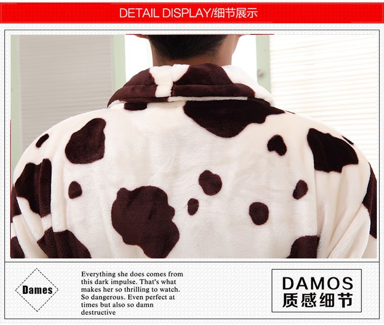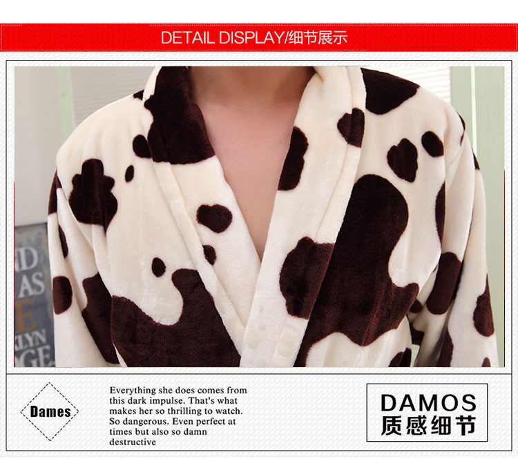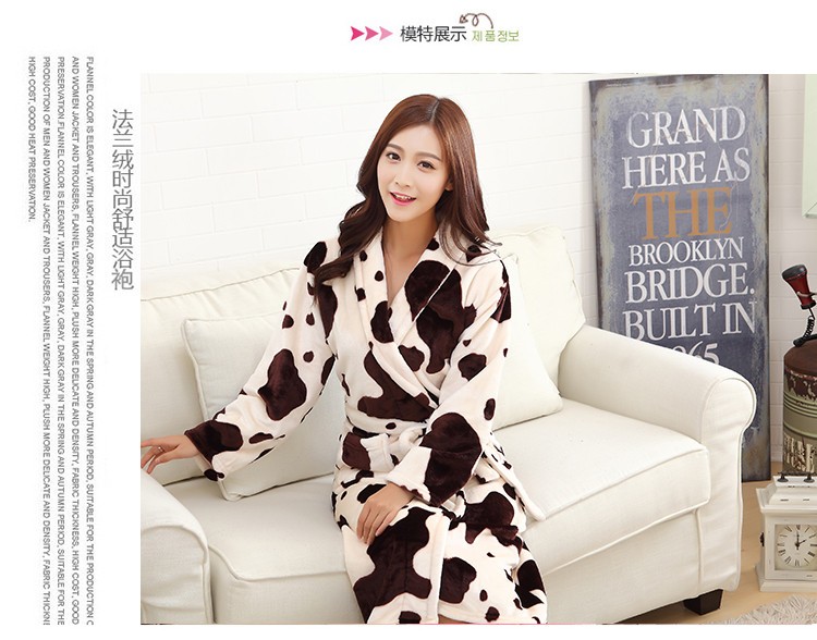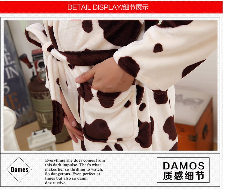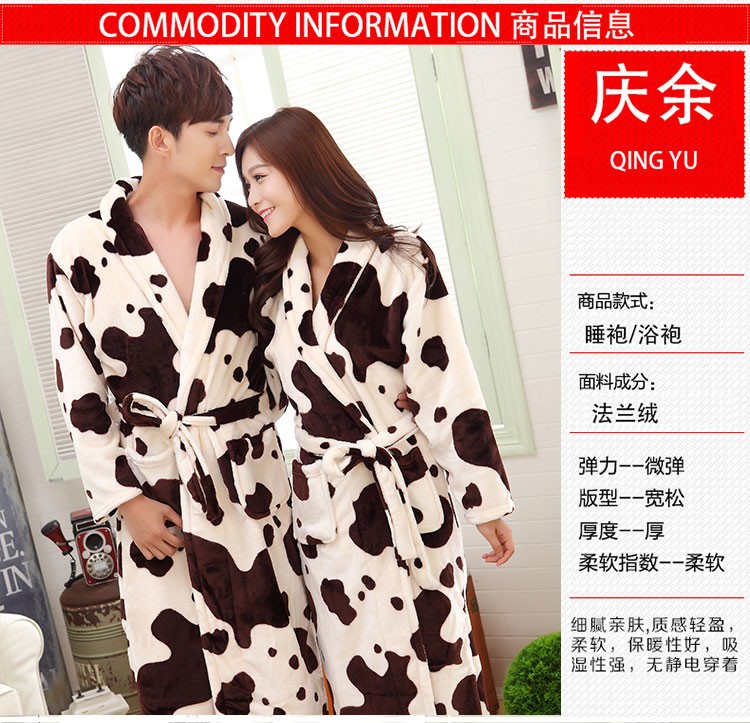 法兰绒加厚保暖睡袍浴袍 奶牛