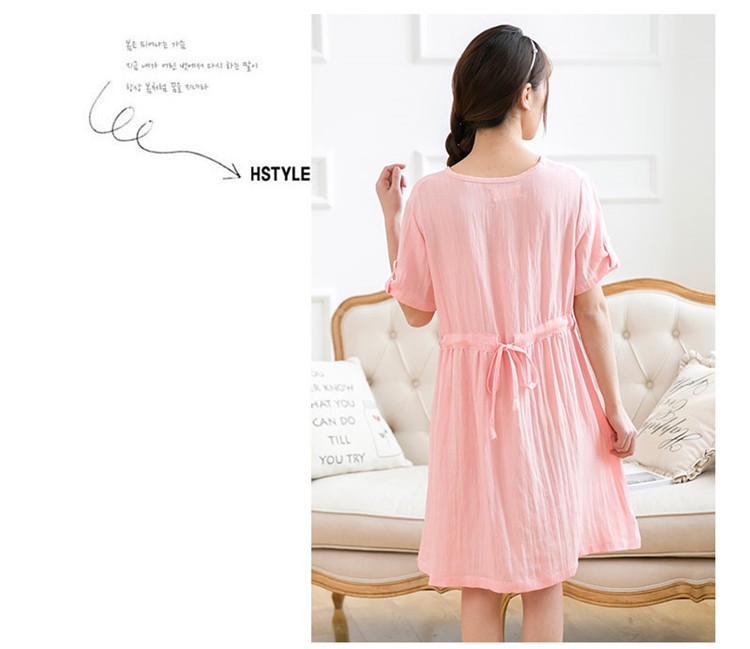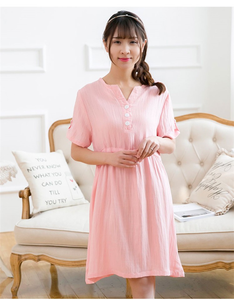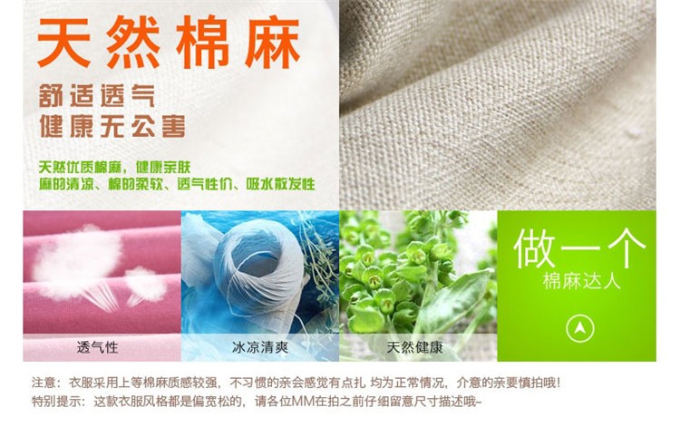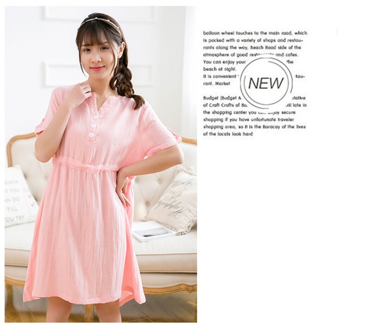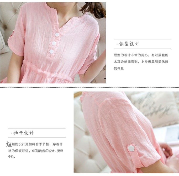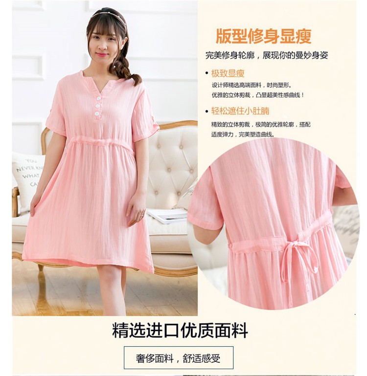 棉麻复古透气裙大码女士简约中长款裙子 水粉裙