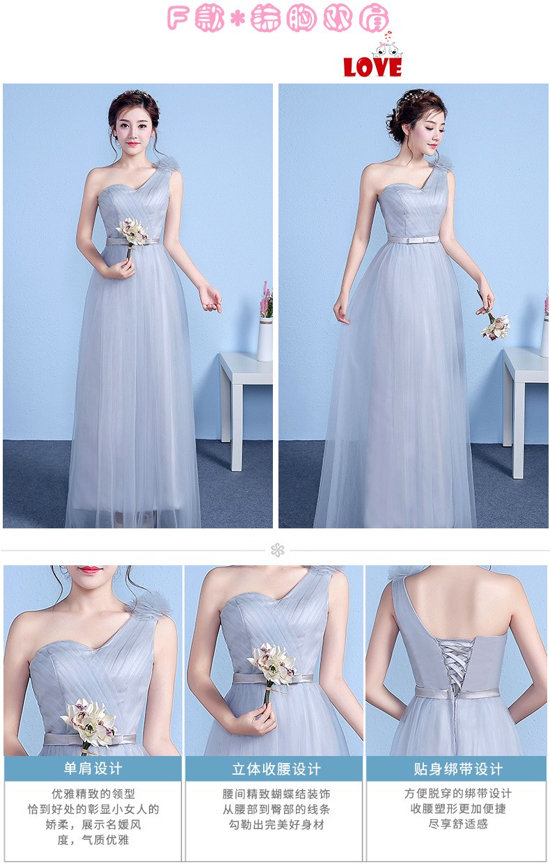 2016秋冬新款韩式修身显瘦灰色伴娘礼服伴娘团长款姐妹裙