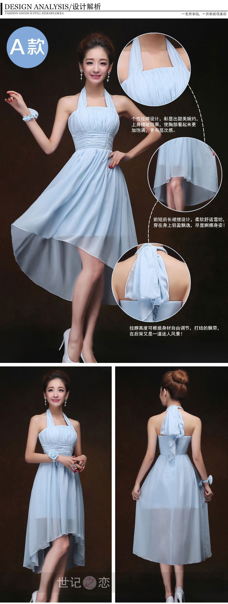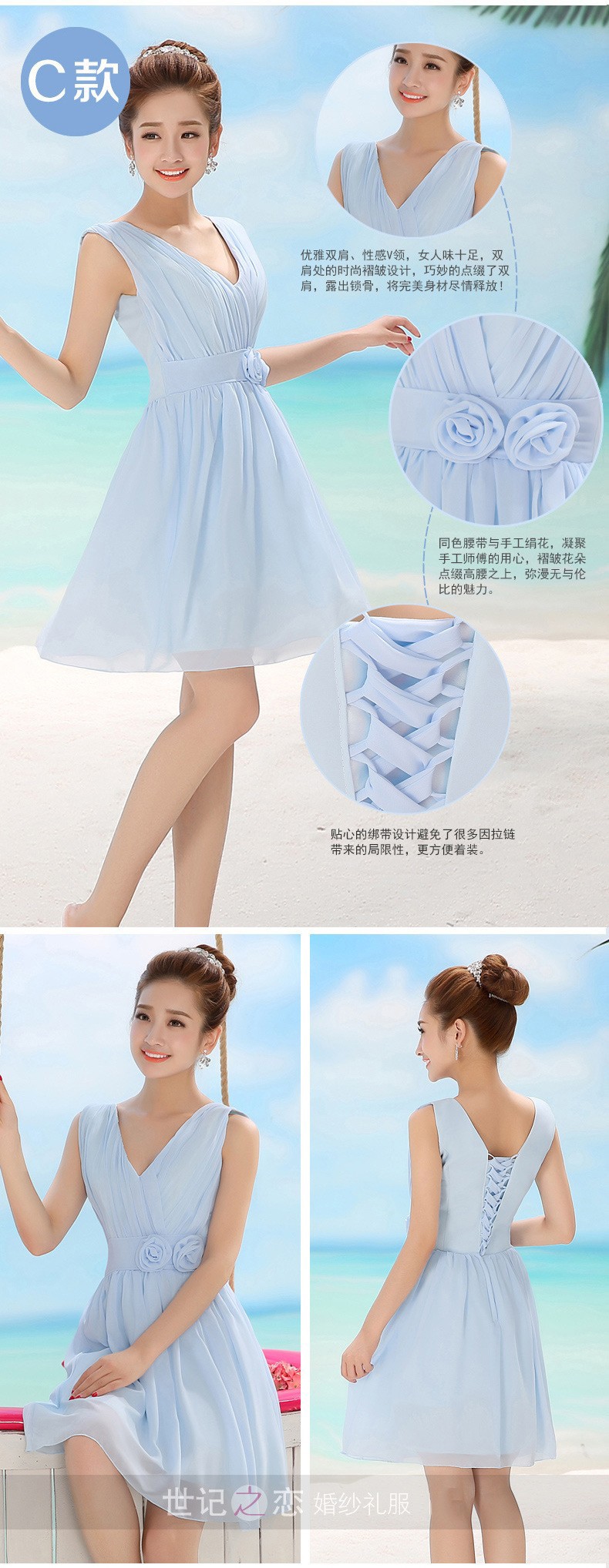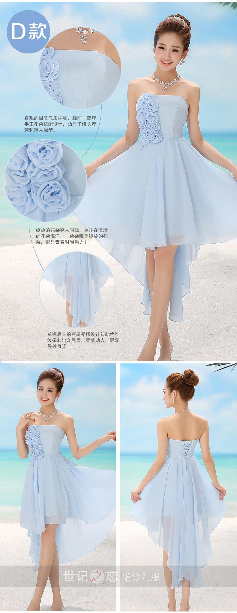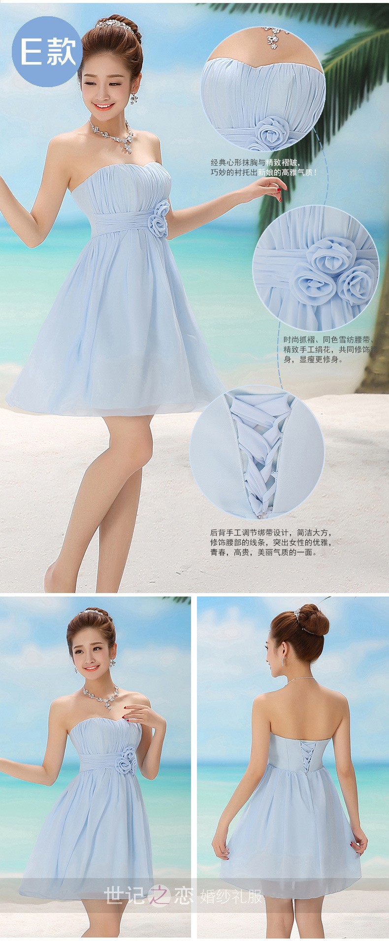 伴娘服2016新款秋冬姐妹团女短款淡蓝色甜美连衣裙生日宴会晚礼服