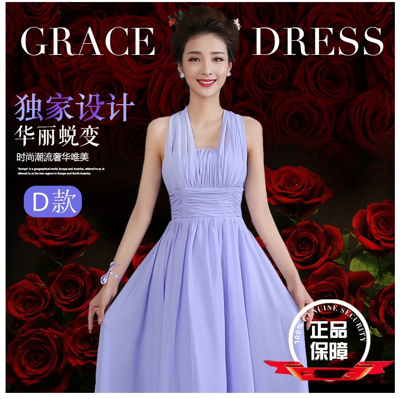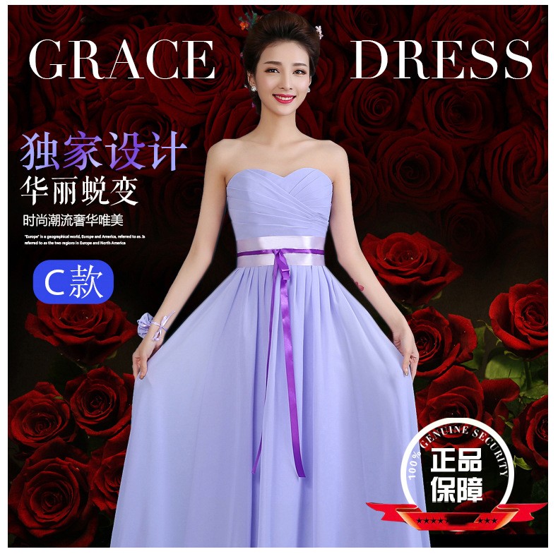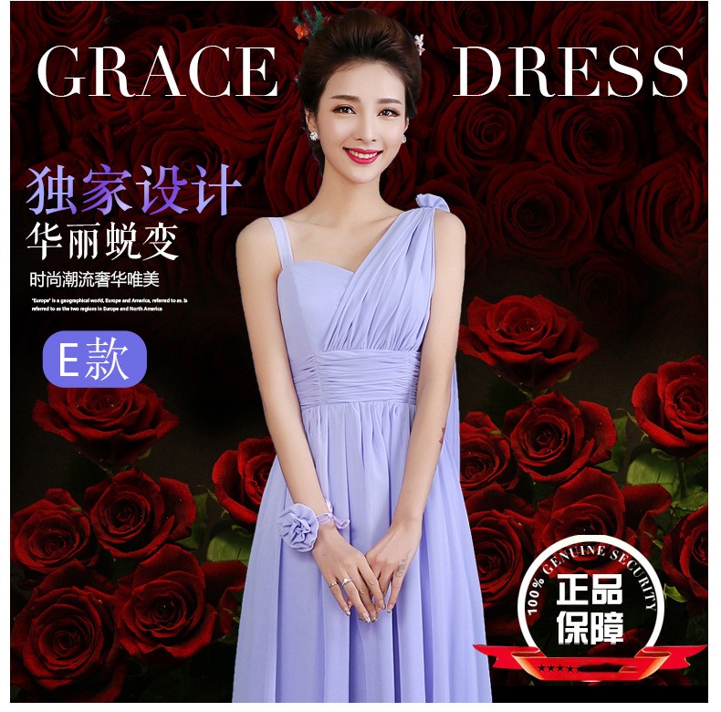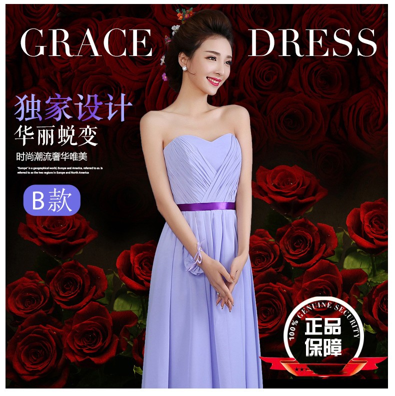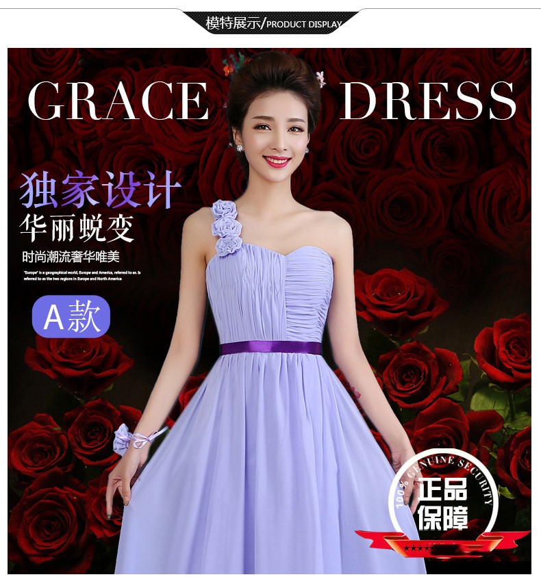 2016秋冬新款修身姐妹裙晚礼服一字肩长款伴娘服
