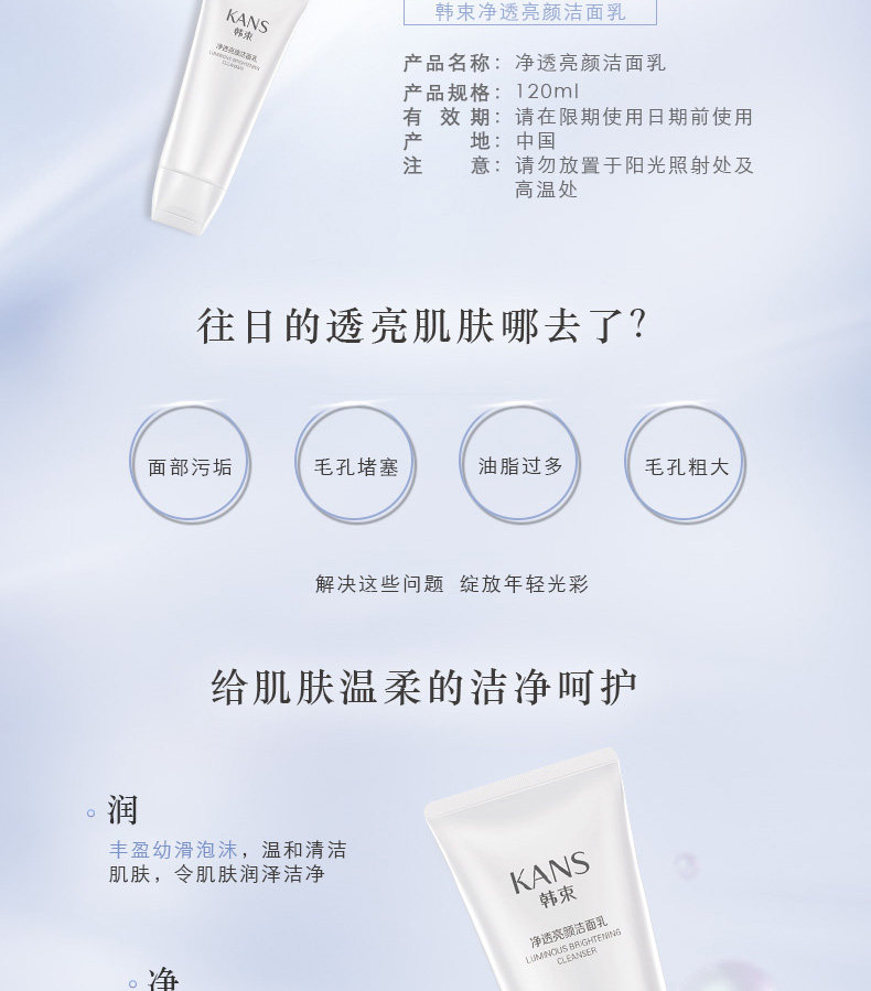 韩束聚光白净透亮颜洁面乳深层清洁补水保湿控油洁面收缩毛孔