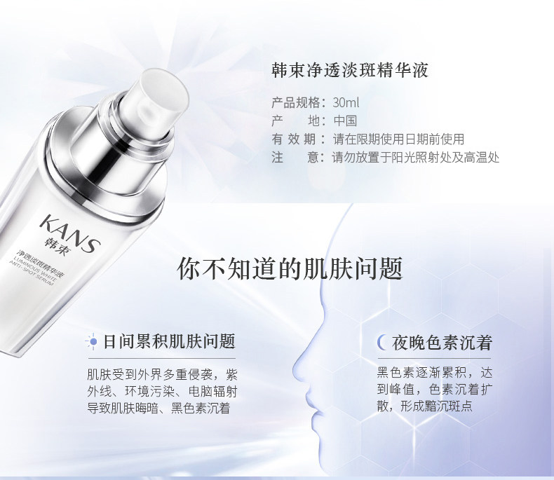 韩束聚光白净透淡斑精华液美白补水保湿滋润收缩紧致毛孔护肤品