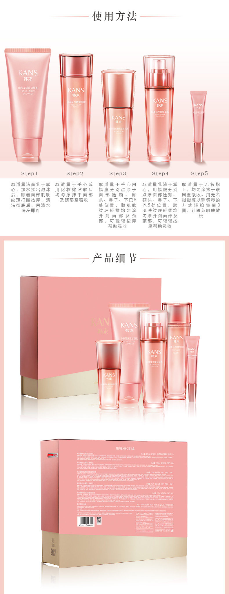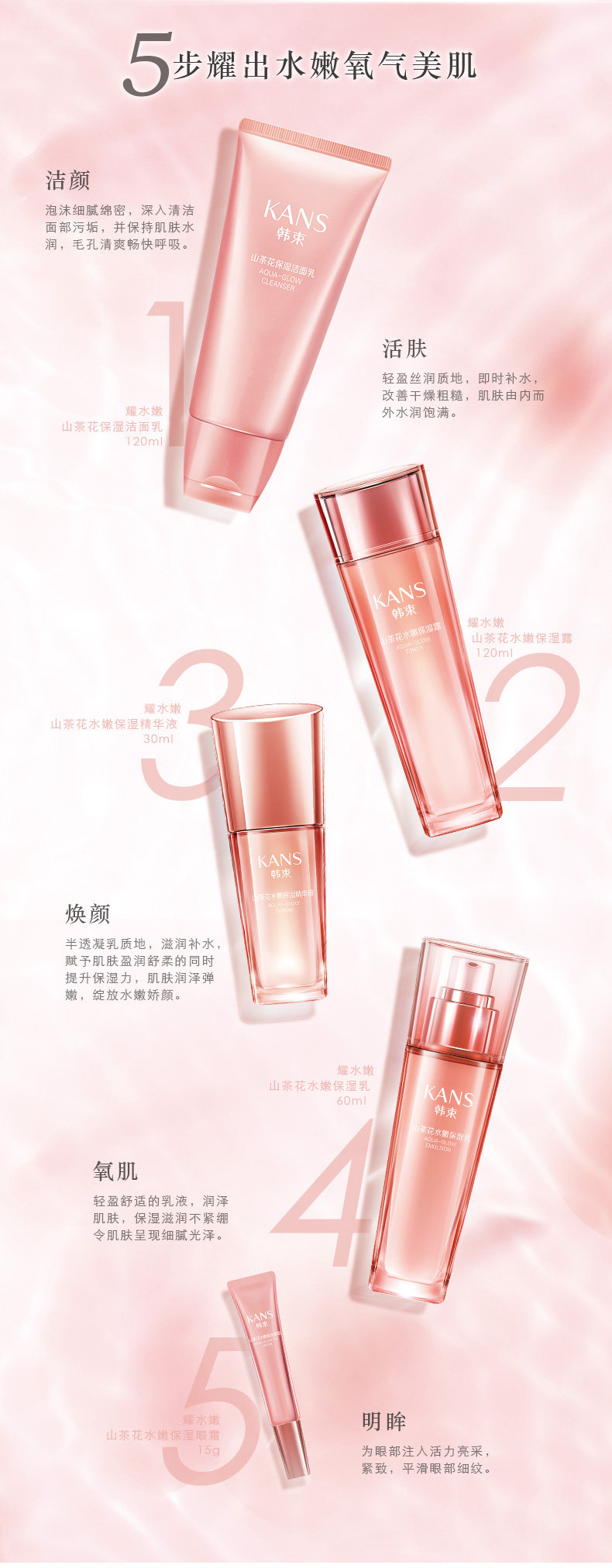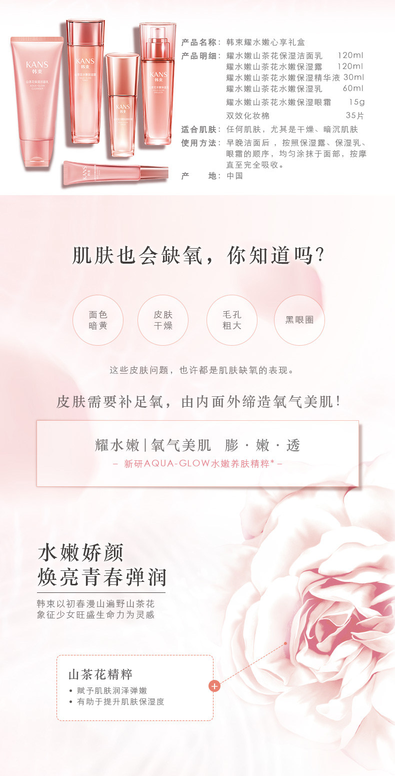 韩束耀水嫩化妆品套装补水保湿洁面爽肤水乳液秋冬山茶花护肤品
