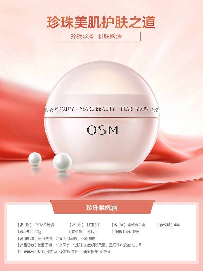 欧诗漫珍珠柔嫩霜女男学生补水保湿滋润提亮肤色素颜润肤面霜