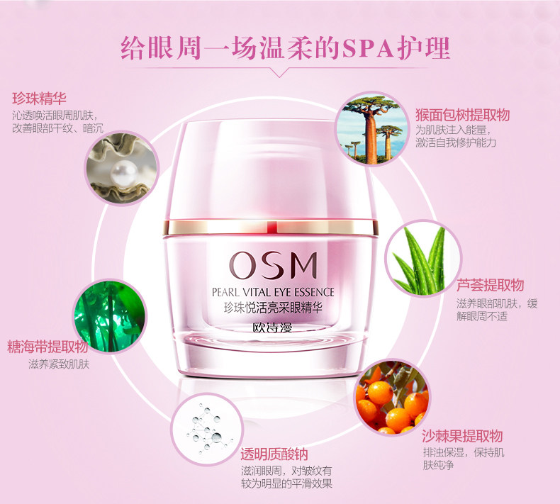 欧诗漫悦活珍珠亮采眼精华去淡化黑眼圈眼袋细纹提拉紧致眼霜