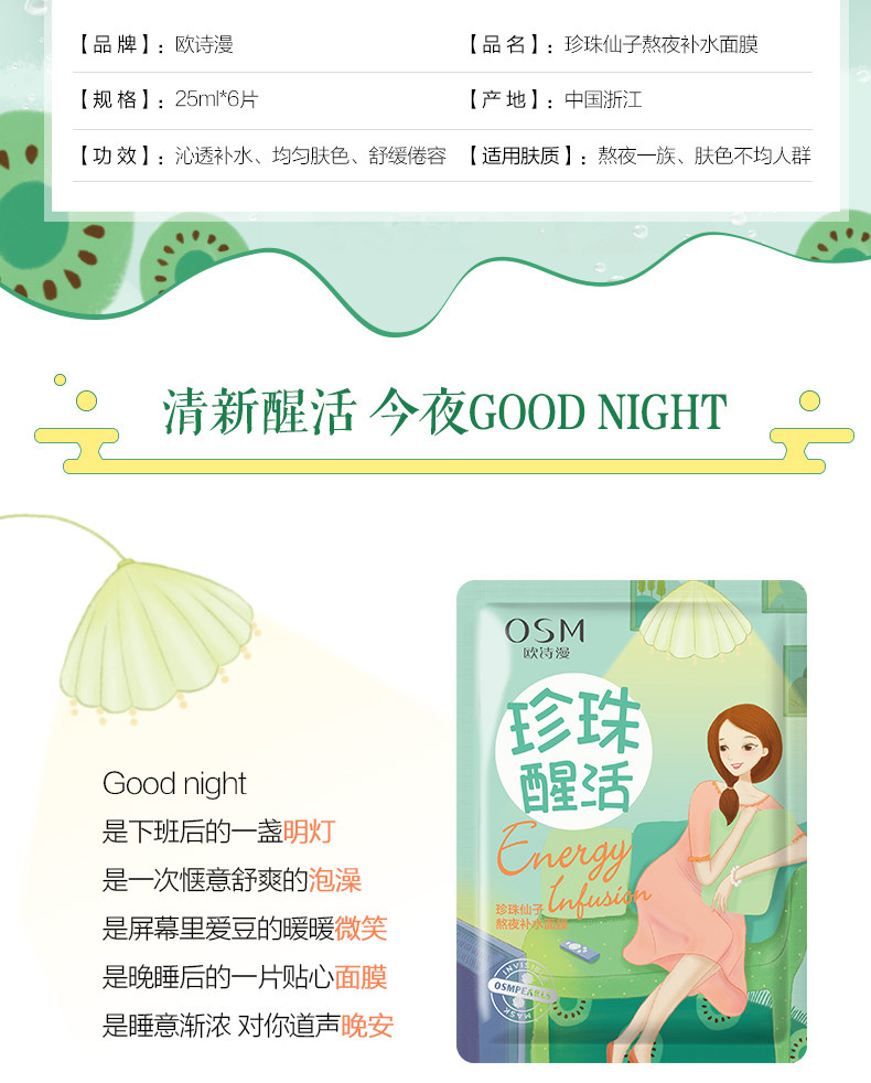 OSM/欧诗漫珍珠仙子熬夜补水面膜